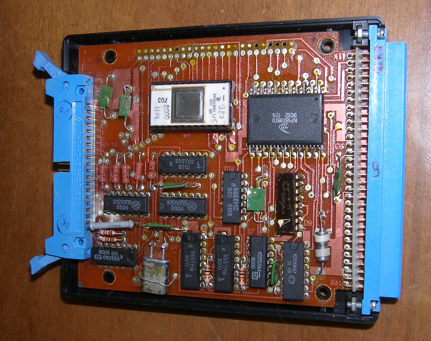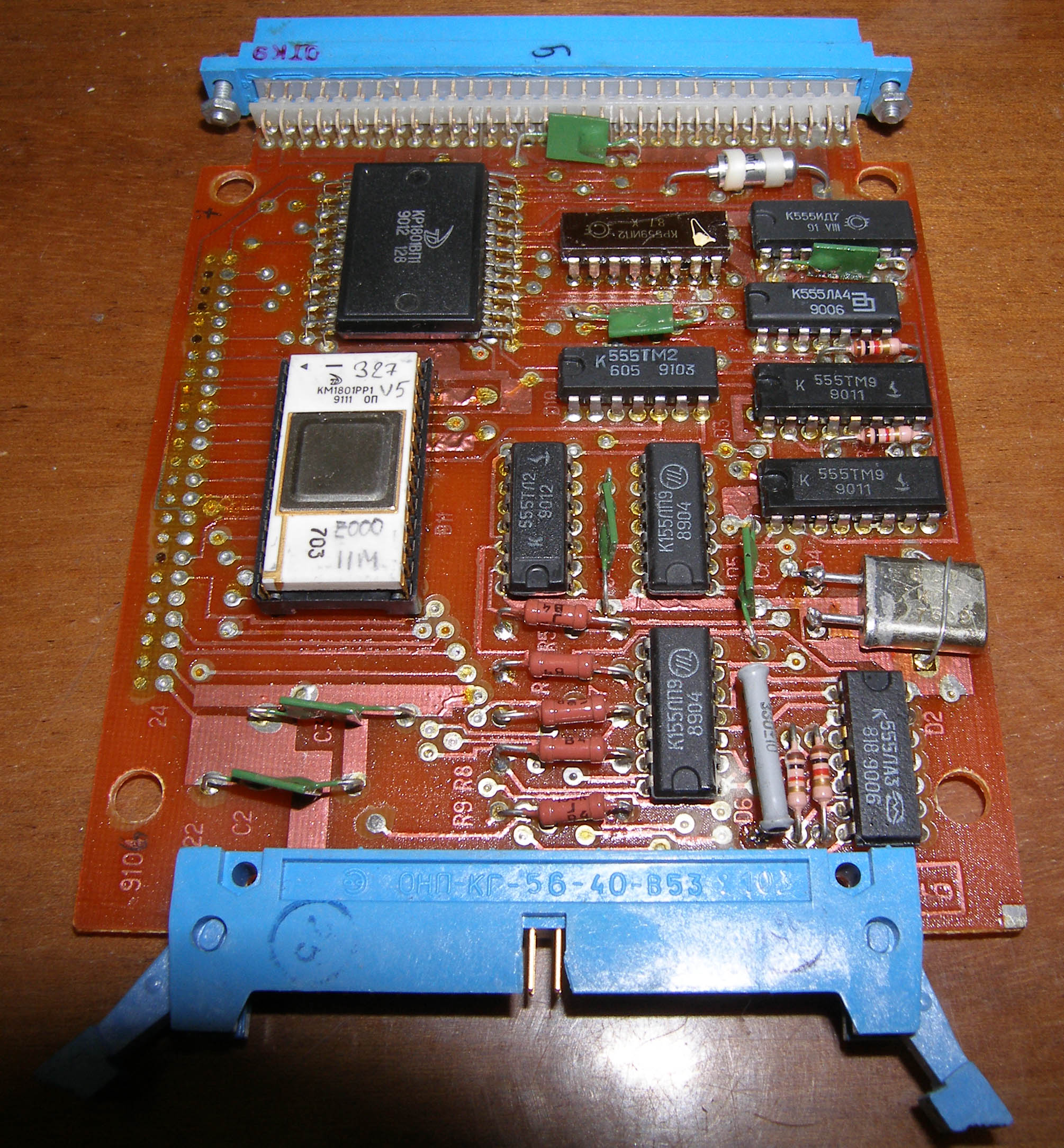 1й - заводской, но тк ПЗУ была дефектная то пришлось поменять 2й - cамосбор. мы (дело было в Кирове в 90х) собирали контроллеры с платами расширения памяти под ANDOS. Плату расширения (увы у меня не сохранилась) разработал Сергей Деньгин. что примечательно в этой версии использовались РФки - те на РТ5й был собран дешифратор для их управления. тк 1801РР1 были и тогда жуткой редкостью. -------------------- Живы будем - Не помрем !