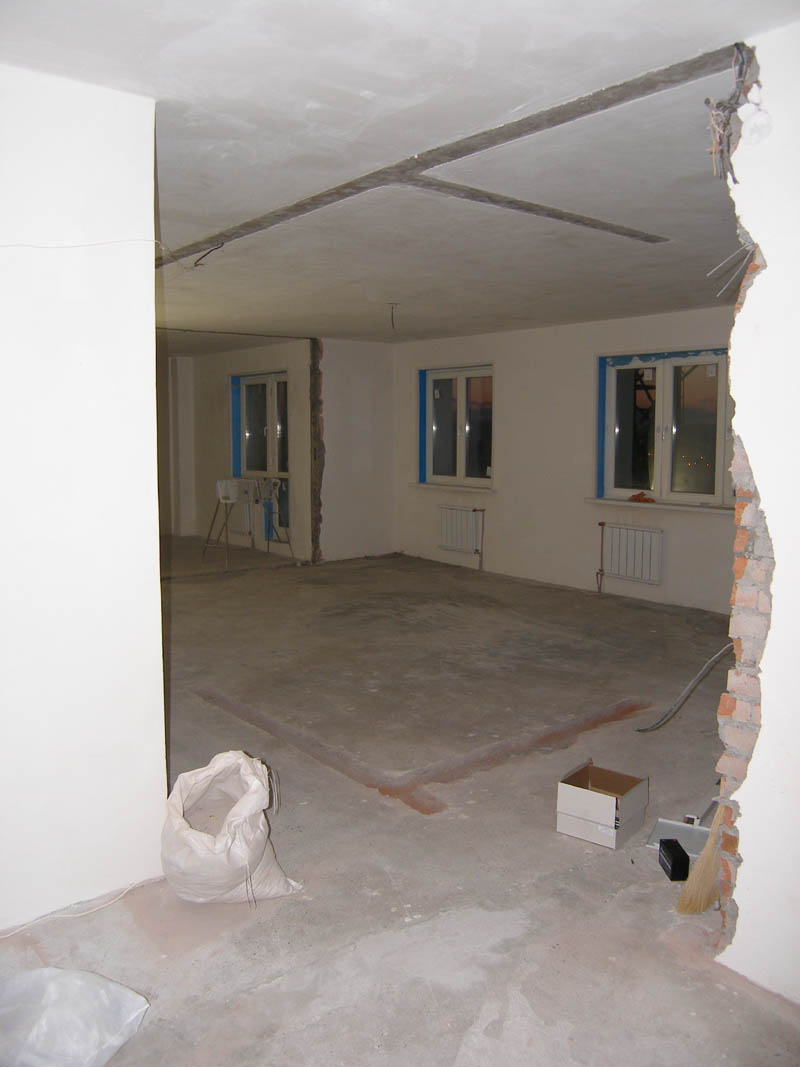 Изначально получистовой ремонт - те стены. по этапам: 1. установлена хорошая дверь - те с сейфовым зазором итд итп. расширен проем до максимума - 2100х1000. 2. поменян подвод в квартиру - проложен кабель ВВГ нг LS - 4x16квмм (достаточно было бы и 3х жил но такого не нашли, а энергетики требует только такой кабель) 3. установлен щит на 72 юнита. пока смонтирован минимум - счетчик и защита 4. сейчас идет слом кирпичных перегородок - они будут заменены на гипсокартоновые -------------------- Живы будем - Не помрем !