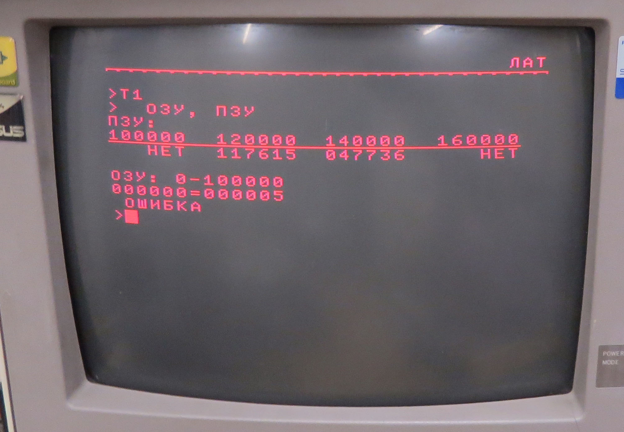 машина БК11М №1 успешно проходит все тесты T1 T3 экран БК11М во время тестирования T8 -------------------- Живы будем - Не помрем !