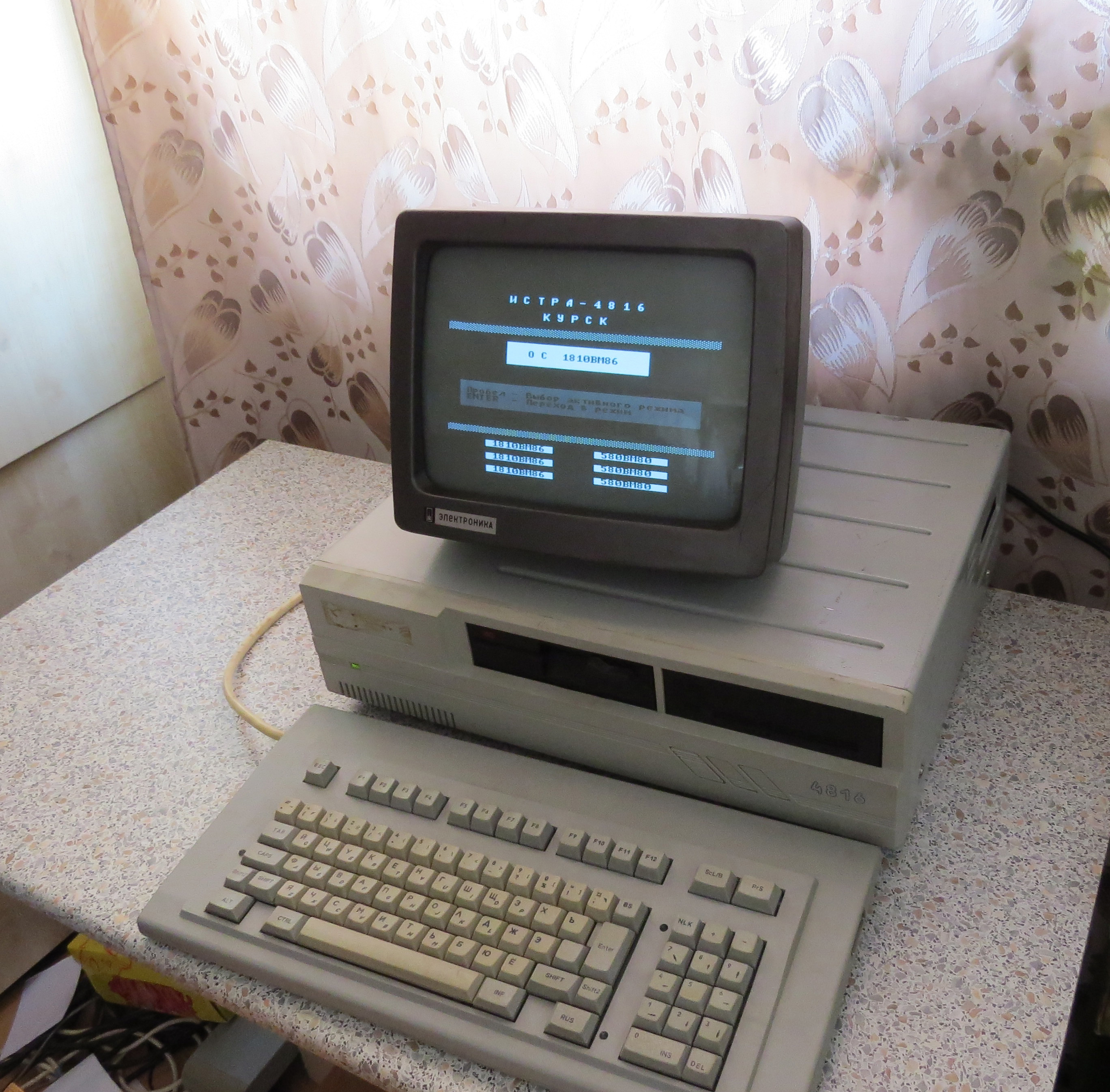 при старте проходит быстрый тест памяти потом появляется меню выбора режима - "монитор" и "ОС 1810ВМ86" -------------------- Живы будем - Не помрем !