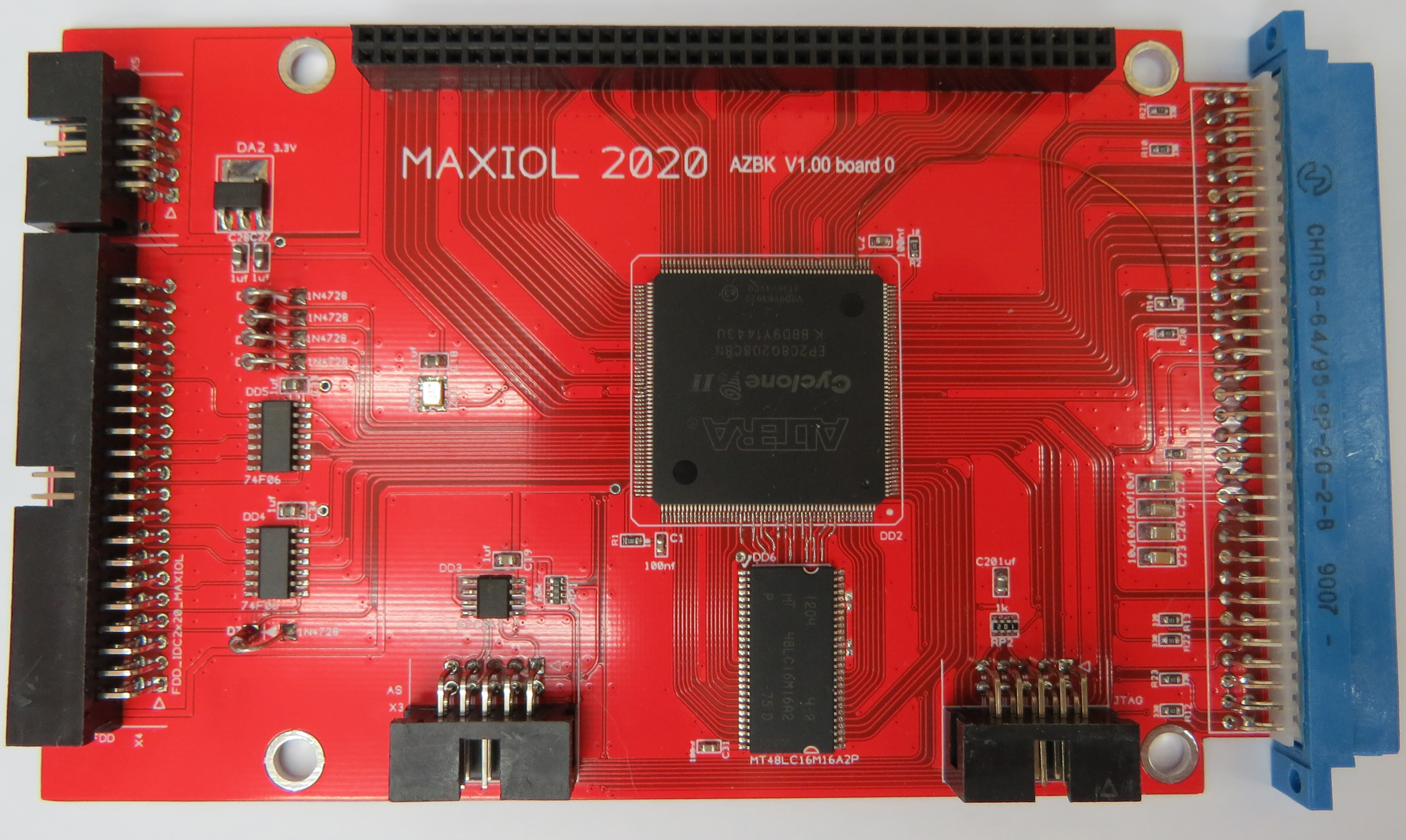 Однако не все так просто, так как программисты в принципе не знали о такой хитрости разработчиков SMK, существует множество программ которые эксплуатируют эту особенность и отключают страницу 1 памяти БК-0011М через установку режима средствами SMK минуя его API Соответственно для поддержки этого режима в AZ была добавлена возможность имитировать поведение SMK и перетягивание 1 в 0. Так как AZ изначально проектировался без знаний о таких приколах [мне даже в голову не могло придти что кто-то будет перетягивать выходы], то управление окном через A22 изначально не разведенo на плате. Однако это легко поправить На нижней плате AZБК надо отпаять резистор R14 и припаять проводок от ноги ПЛИС к левой [на фото] площадке где был резистор: общий вид более детально -------------------- Живы будем - Не помрем !