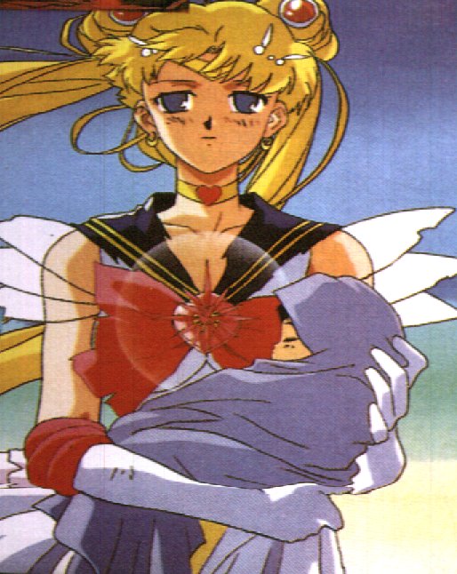 Я просто умираю когда смотрю конец третьего сезона, где появляется из ниоткуда Сэйлормун с растрепаными волосами, в оборваном костюме, с безжизненными глазами и младенцем Хотару на руках...