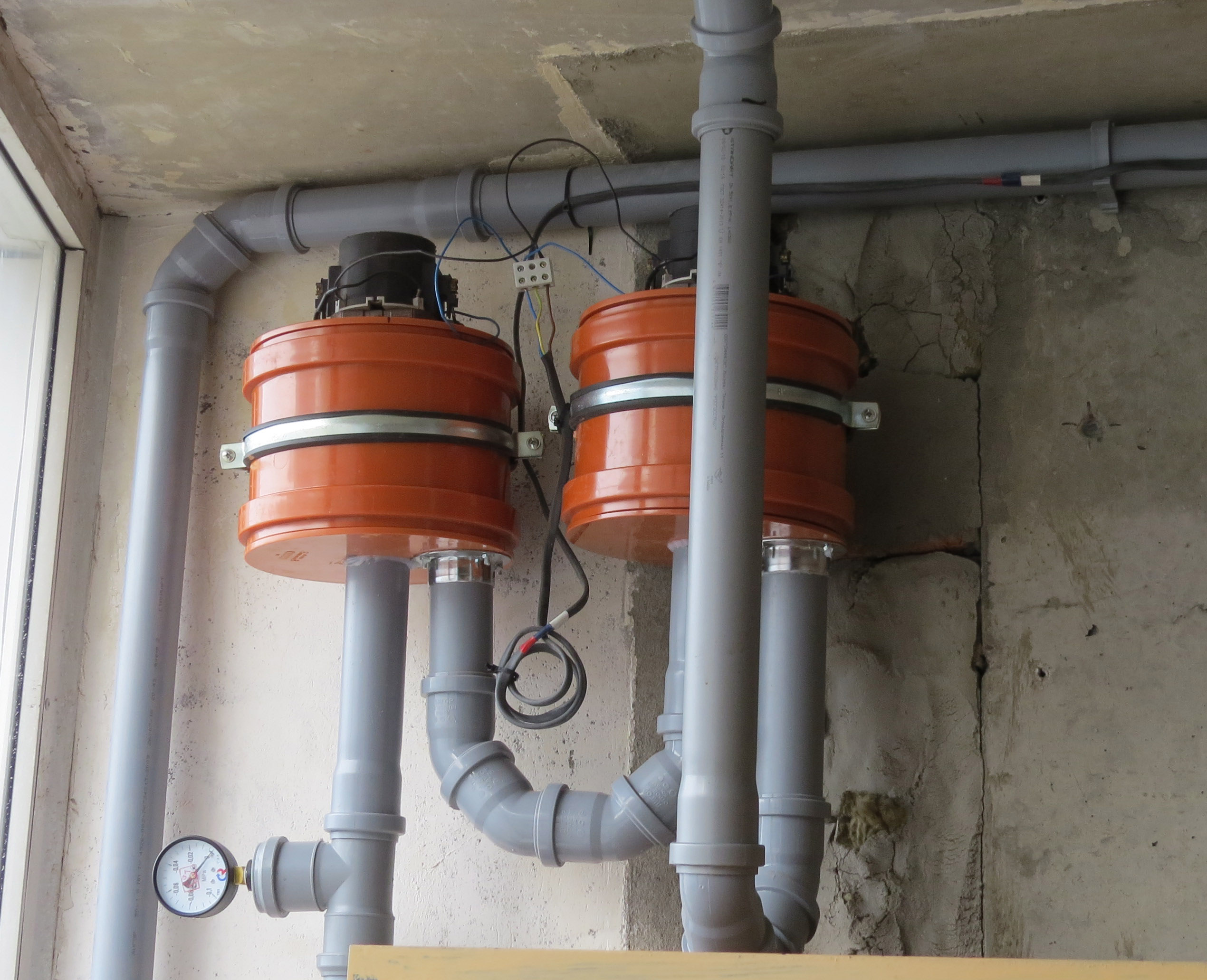 - очень дорого - не очень качественно - очень дорого в случае ремонта - те новый двигатель - от 35тыр Соответственно я изначально делая ремонт в квартире заложил коммуникации под центральный пылесос. Технология простая - используем обычную канализационную трубу 50мм, все углы делаем из уголков 45градусов или тройников 45 градусов. Подключение пневморозетки делаем трубой 40мм с углом 90 градусов для того, чтобы габаритный мусор застрял именно тут, а уж если он "пролез" то он пролетит по 50мм трубе гарантированно ! Сам пылесос прост 1. первое звено фильтрации это циклон - берем китайский 2. ставим циклон на 40Л бидон из под молока - это оптимум по прочности и стоимости (б/у бидон 500р) 3. далее тонкая очистка - используем готовый канальный вентиляционный фильтр 160мм, но внутрь ввариваем каркас безопасности - при разряжении в 40кПа, без него этот ящик просто порвет (на каждую стенку давит по 360кГ) 4. потом идут два агрегата - пылесоса и выхоп на улицу. 5. электрическая часть проста - контактор 220В 16А который управляется реле 24В, которое уже включается контактами в пневморозетках. такая развязка и безопасна и долговечна тк применяется отдельный контактор ну и остается купить готовый шланг Итоговые характеристики - разряжение - 40кПа - потребляемая мощность 2.4-2.8кВт - 9 пневморозеток Преимущества самоделки - большой объем емкости под мусор - 40Л - хватит на пару лет - большой фильтр тонкой очистки - те можно несколько лет не заниматься чисткой. так как фильтр синтетический, его можно мыть. те обслуживание ничего не стоит. - очень высокая ремонтопригодность - новый двигатель стоит всего 2400-3000р и есть в наличии в большом количестве магазинов - при желании можно поставить третий двигатель и переплюнуть самую мощную модель встроенного пылесоса который дает 56кПа (но на самом деле 40 уже достаточно) -------------------- Живы будем - Не помрем !