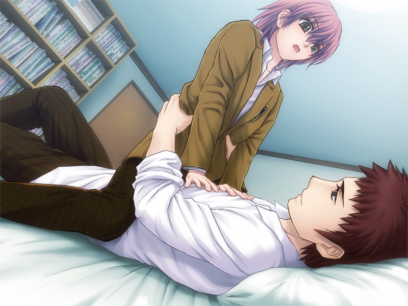 Компания: PIL/SLASH Год: 2007 Художник: Maruki Bunka Жанр: yaoi, school love, non-con Возрастной ценз: 18+ Чтобы посещать старшую школу, главный герой Aikawa Yuuta перебирается жить к своему аники (старшему брату), Aikawa Shyuuhe'ю. Поначалу они души друг в друге не чают и искренне радуются сожительству, но... Стоит Yuut'е начать ходить на занятия, как Syuuhei проявляет себя во всей красе: чуть ли не в первый же день является в школу знакомиться с классом брата и его сенсеем, а после уроков приезжает за ним на машине и чуть ли не силой отволакивает домой. Надо ли говорить, что юноша так долго не выдерживает - с некоторыми ребятами из класса он знаком давно, и у них тоже есть свои планы. И вот в один прекрасный день лучший друг Yuut'ы Hirose Ryo отвозит его к себе домой и объясняет родителям, что "Это Aikawa Yuuta, мой одноклассник. Он некоторое время поживет с нами". Родители соглашаются, но вечером общую идиллию разрушает внезапный приезд аники. Ryo и Shyuuhei "выходят поговорить" и чтобы настырный аники наконец отстал, Ryo в порыве сообщает ему, что-де "Мы с Yuut'ой любовники и хотим жить вместе. У моих родителей". Так и начинается "игра в любовников". Эскизы прикрепленных изображений |