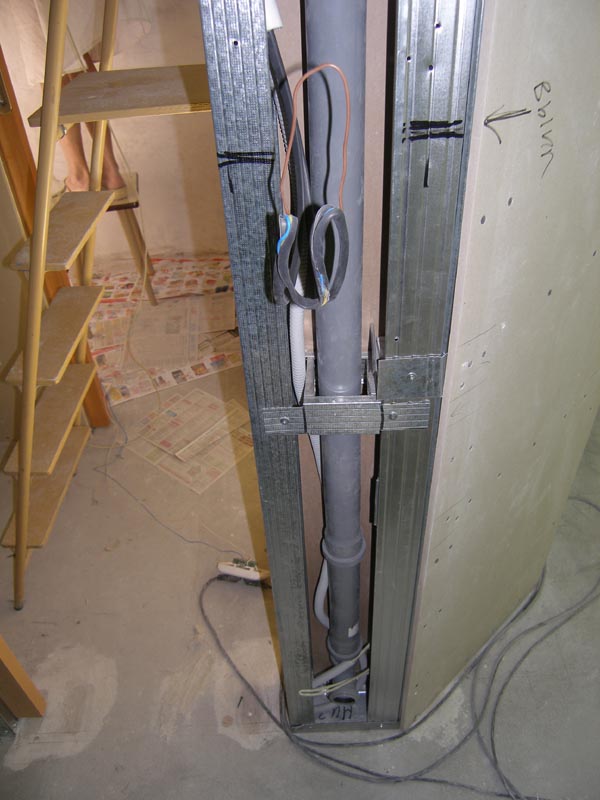 замажем щели между трубами и ГКЛ вид на проводку для пылесоса и выключатель -------------------- Живы будем - Не помрем !