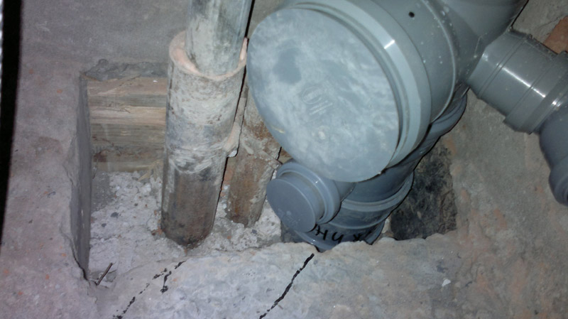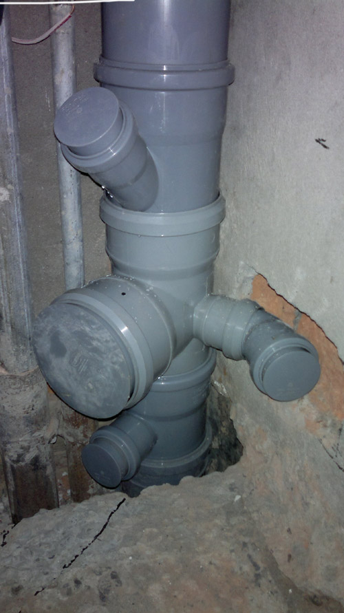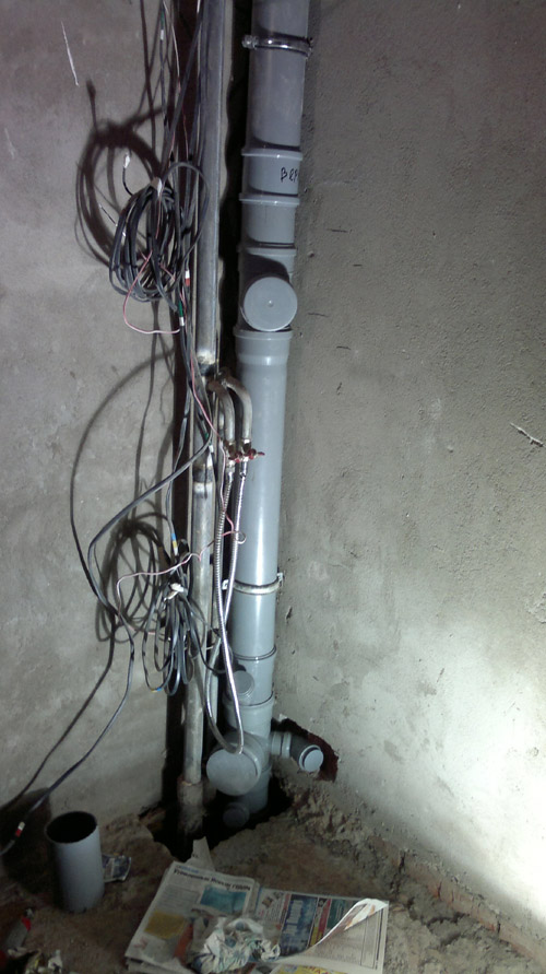 так как в ванной запланирован трапик - надо поставить вход в канализацию на уровне перекрытия соответственно надо срезать трубу ниже уровня перекрытия для данной операции была куплена китайская "дремель" за 599 в Леруа Мерлен который недавно открылся в Красноярске Срез на уровне перекрытия В итоге получилось: всего 3 уровня слива: нижний - трапик на полу средний - унитаз, ванная и раковина верхний - стиральная машина, слив из промывных фильтров тонкой очистки -------------------- Живы будем - Не помрем !