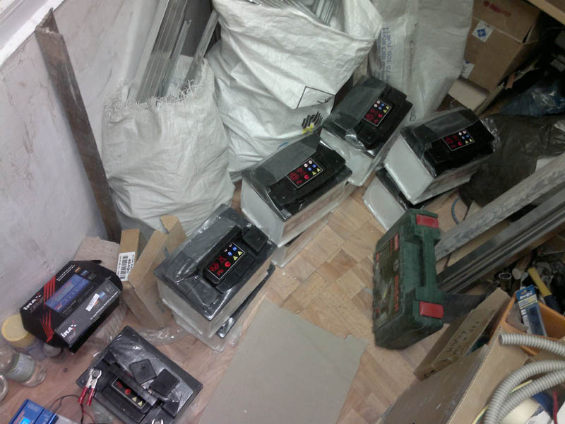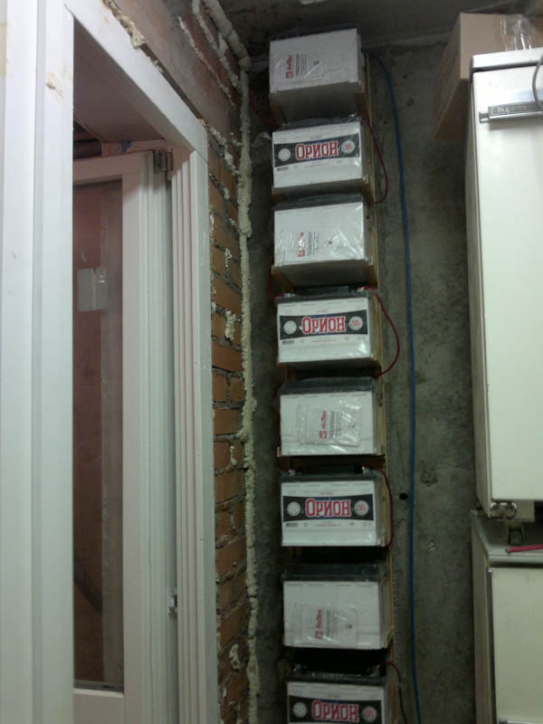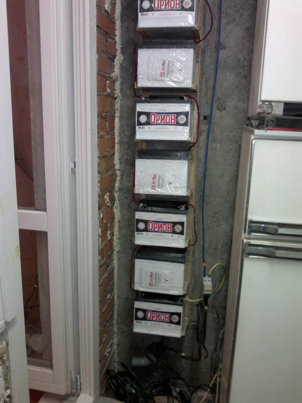 подзарядка для выравнивания стойка в сборе - 10шт сегодня прогнал натурные испытания нагрузка - чайник на выкипание с постоянно подливаемой водой - 1,8кВт в начале напряжения на каждом аккуме было 12,10-12,07В через 20 минут поднялось до 12,3В через 80 минут упало до 12,07В дольше гонять не стал, тк аккумы уже вошли в режим и их сейчас бесперебойник заряжает померял потерю напряжения на проводе с лоджии до серверной - 1,9В те отличный результат для 15м линии c минимальным сечением 7,5квмм (межаккумуляторные подводы выполнены 10-кой) -------------------- Живы будем - Не помрем !