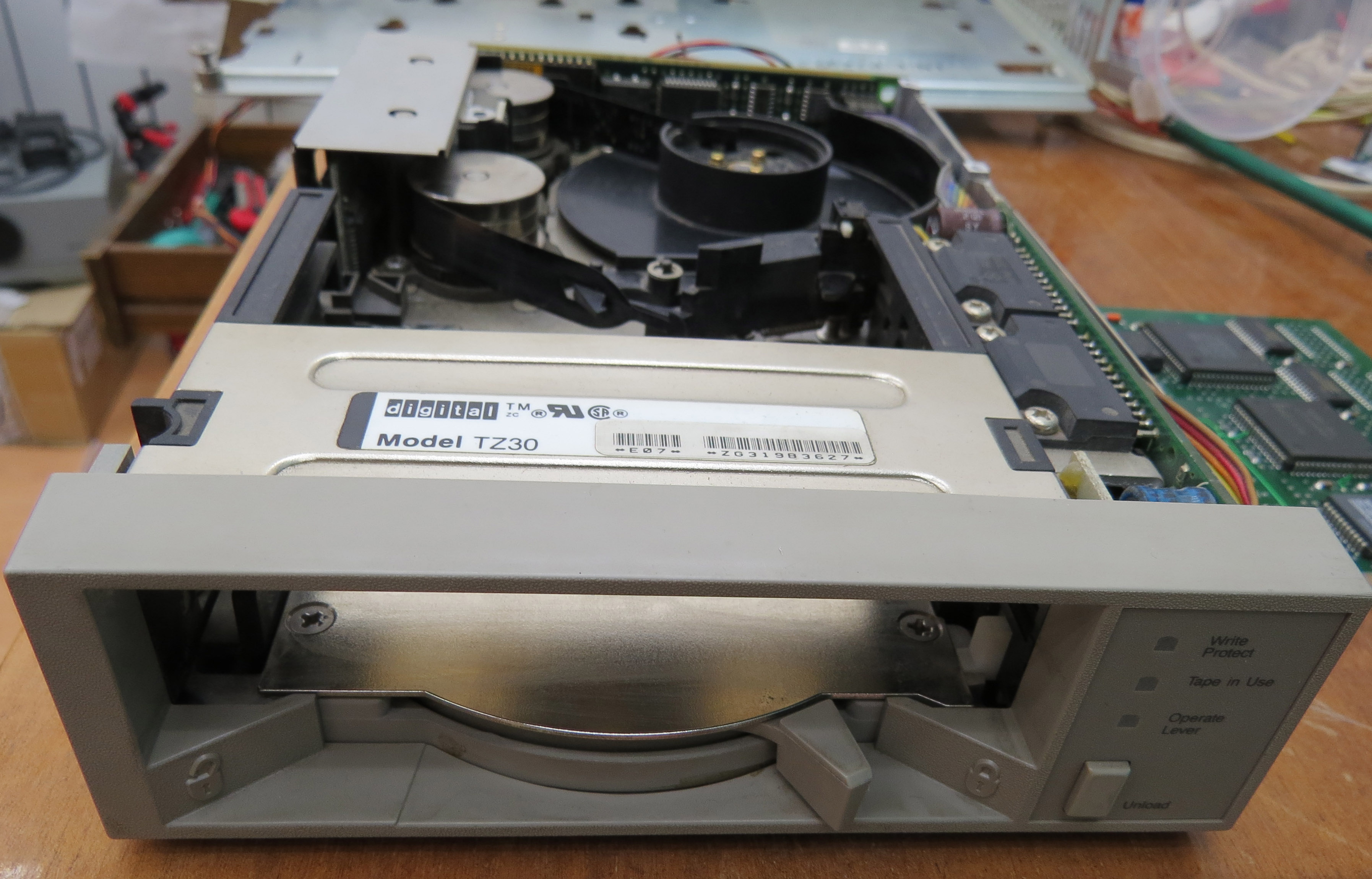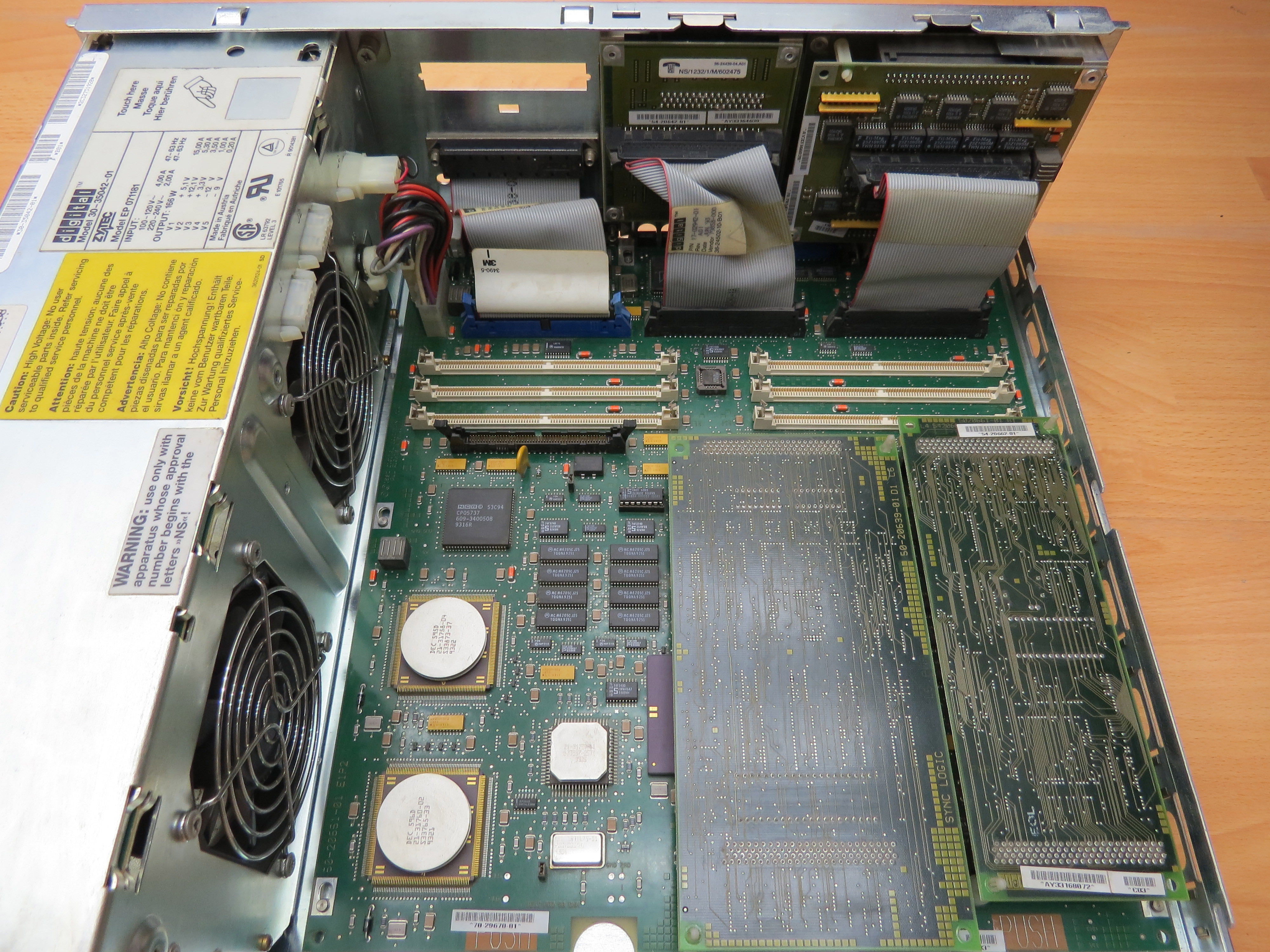 Шасси с установленной материнской платой, блоком питания, памятью и нижним мини-шасси с ленточным приводом