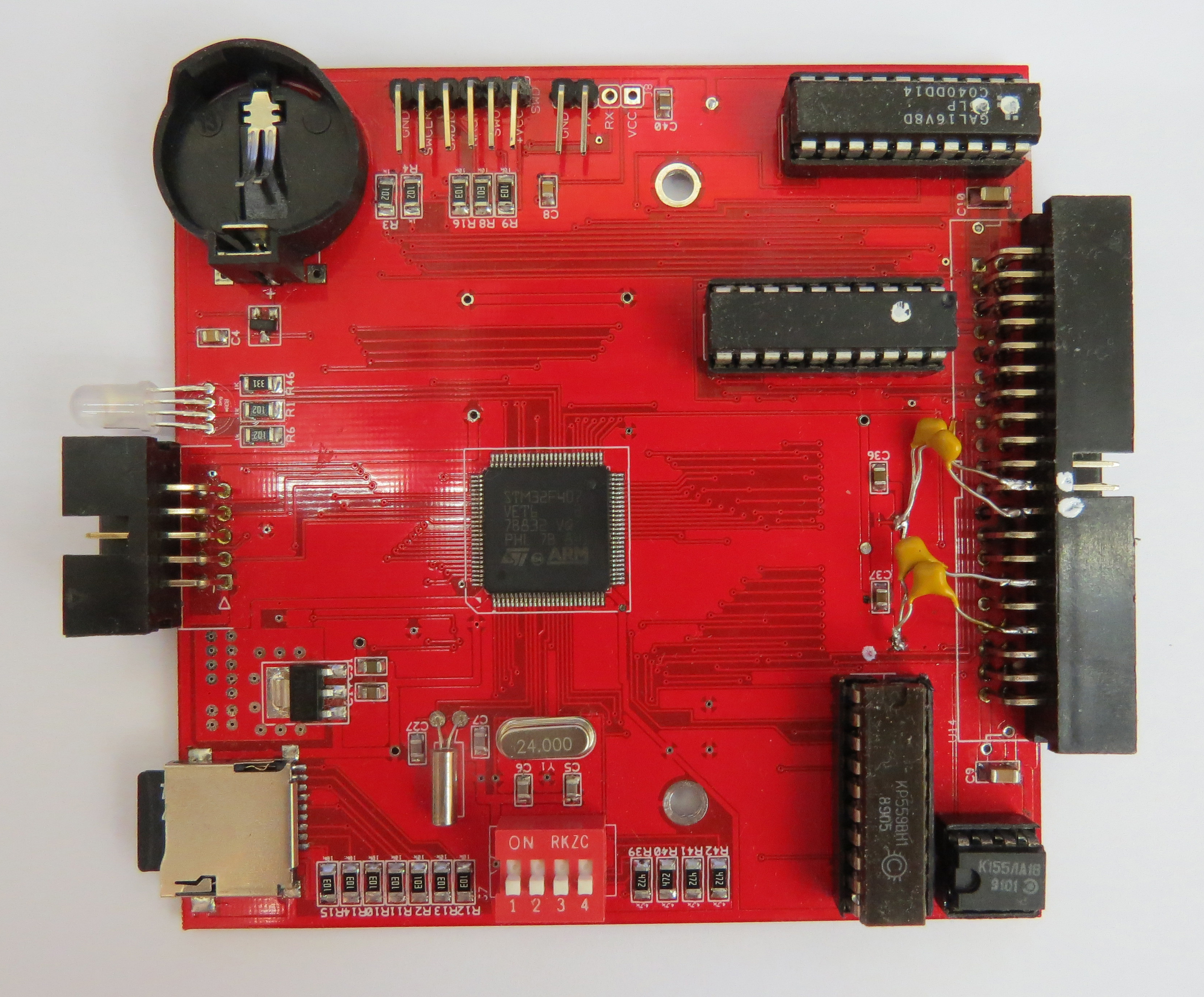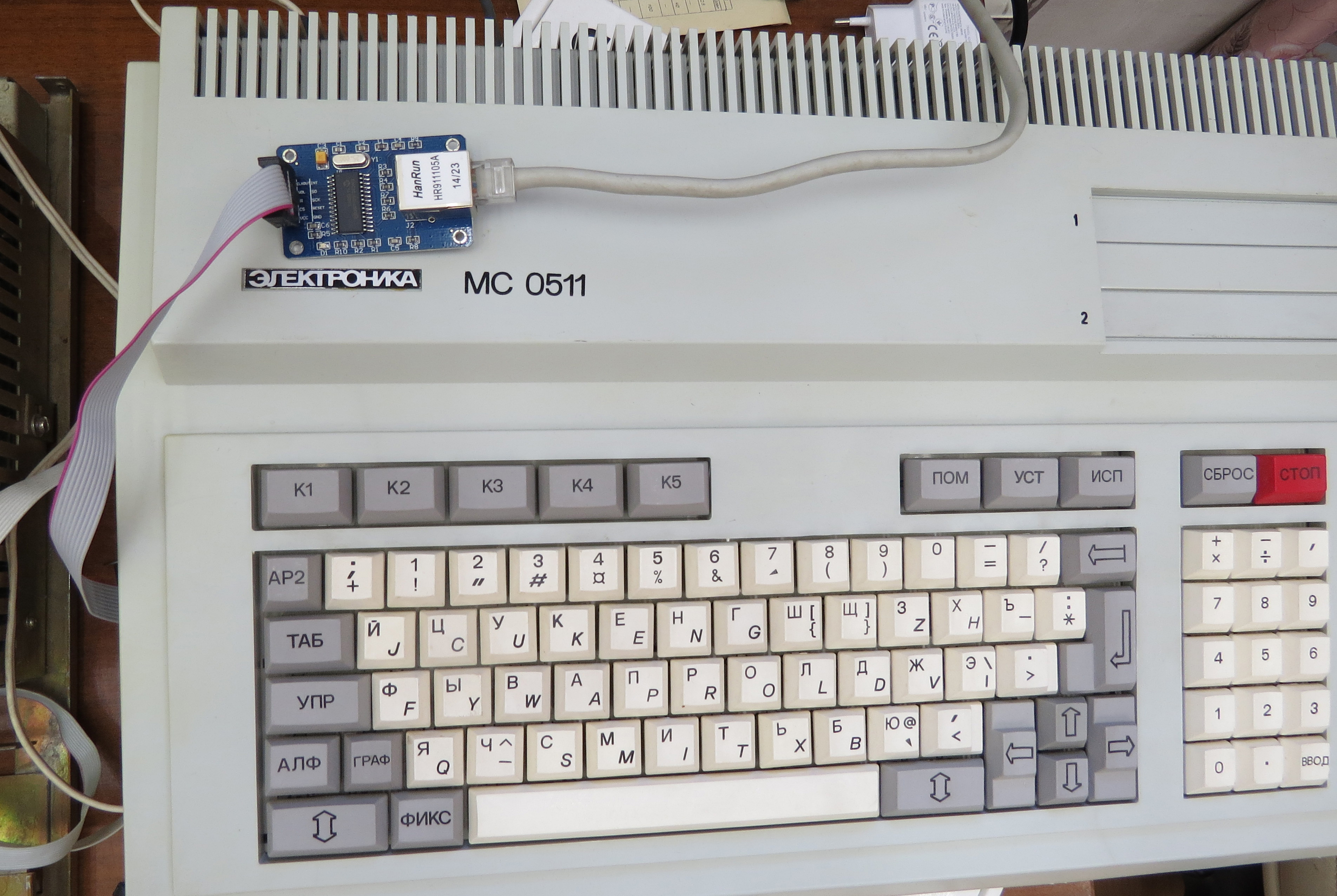 Фото контроллера V1.00 V1.01 V2 Установка контроллера в новую версию УКНЦ с IDC40 в качестве разъема под сетевой адаптер сети УКНЦ Подключение сетевого модуля К старым версиями УКНЦ с широким СА (как правило это 8ми цветные версии УКНЦ ) берем шлейф IDE отрезаем разъем с шлейфом длиной 80мм зачищаем, лудим и маркируем для исключения ошибок к сожалению эта заготовка оказалась бракованной (те прозвонка шлейфа показала что нет контакта по одному пину) соответственно был взят еще один кусок и также подготовлен запаиваем вид сверху вид снизу соответствие контактов все неиспользуемые - обрезаем как на фото в сборе итог получается аккуратный и контроллер можно снимать-устанавливать без разбора машины Альтернативный вариант подключения от monoxrom Ссылки: Приобрести контроллер для ДВК можно тут Приобрести контроллер для УКНЦ можно тут Процедура обновления firmware (прошивки) контроллера сборка и наладка конструктора контроллера для ДВК печатная плата версии v1.01 Контроллер псевдодиска на MicroSD на шину МПИ: особенности версии для УКНЦ Страницы разработки на ZX-PK УКНЦ + AZ - вариант контроллера псевдодисков на микро-SD для УКНЦ. Контроллер псевдодиска на SD-карте для ДВК -------------------- Живы будем - Не помрем !