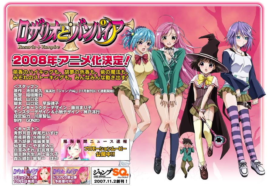 Тип: ТВ (13 эп.), 25 мин. Год: 2008 15-летний разгильдяй Цукунэ Аоно завалил вступительные экзамены в старшую школу, куда поступили все его друзья. Пропал бы у парня целый год, но отцу в руки попало приглашение в некую Призрачную Академию, куда берут с любыми оценками. Счастливые родители тут же собрали сына в дорогу, а стоило бы подумать. Цукунэ это понял, когда автобус вынырнул из длинного туннеля в мир, достойный Лавкрафта, где красное небо, нет сотовой связи и летают говорящие мыши. Впрочем, наш герой обо всем забыл, когда на него в буквальном смысле рухнула с неба таинственная красавица Мока, странствующая в поисках друзей (в которые он тут же записался). И какая разница, что обычного парня занесло в школу нечисти, «йокаев», что вынуждены как-то приспосабливаться к жизни в мире «людишек»? Ну, сидят с ним в классе огр-людоед, ведьма, оборотень и суккуб, и что такого? В рядовой японской школе, что ли, лучше? Даже факт, что удаление с пышной груди новой подруги нательного крестика превращает ее в высшего вампира, этакую Принцессу монстров, уже не пугает юного философа, который твердо уяснил – главное не форма, а содержание! Вот только как Цукунэ проник в магическую школу, защитный барьер которой убивает любого смертного? Розарио + Вампир (Rosario + Vampire) Эскизы прикрепленных изображений |