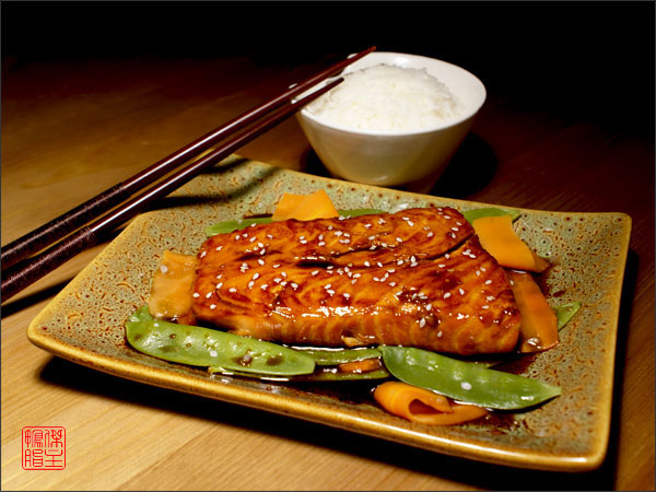 филе лосося — 0,5 кг соевый соус — 3 ст.л. белое вино — 3 ст.л. рисовый или бальзамический уксус — 1 ч.л. сахарная пудра — 2 ч.л. семена кунжута — 1 ст.л. Приготовление: 1. Рыбное филе нарезать на небольшие порционные кусочки. 2. Нагреть смесь соевого соуса, вина, уксуса и 1 ч.л. пудры. Подождать, пока растворится сахар, затем остудить и замариновать в получившемся соусе филе лосося около тридцати минут. 3. Затем филе вынуть из соуса (дать стечь соусу или обсушить кухонным бумажным полотенцем) и обжарить на сковороде или на гриле с обеих сторон до появления золотистого цвета — около 7 минут. 4. Соус, в котором рыба мариновалась, перелить в емкость, добавить еще 1 ч.л. сахарной пудры и на медленном огне нагревать, чтобы слегка пузырился. Дать соусу возможность загустеть. Затем с помощью кисточки обмазать филе и посыпать кунжутом. Примечание: в таком соусе можно замариновать как вариант любое мясо. Стоит лишь помнить об увеличении времени маринования. Эскизы прикрепленных изображений |