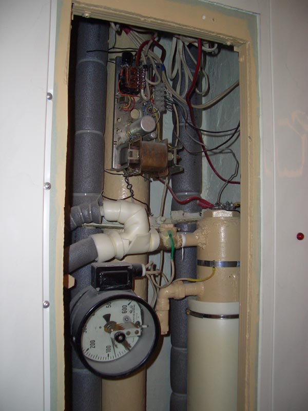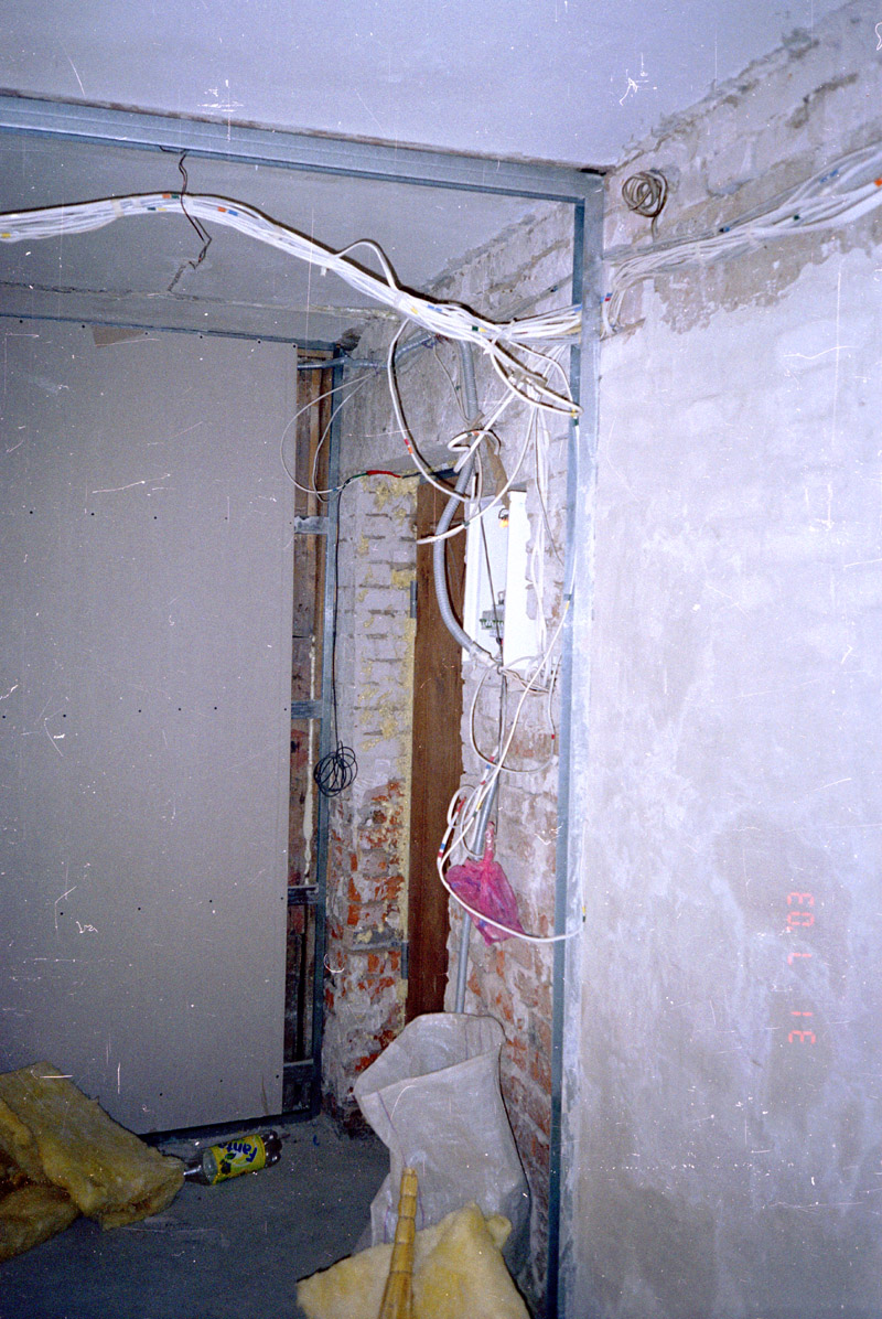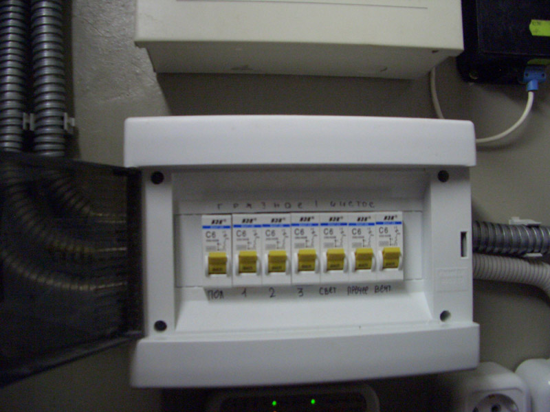 Электрика Первый силовой щиток "грязного" питания аккумуляторы и Smart-UPS в последствии были заменены на хорошие PowerWare-бесперебойники щиток чистого питания в кладов-серверной и прочее оборудование - гигабтный свич и сигналка в последствии было установлено еще много чего - начиная от ip-dkvm-a кончая вводом оптики Розетки в комнате (Legrand Mosaic) в прихожей - еще до обоев в ванной - полка и розетки под телевизор -------------------- Живы будем - Не помрем !