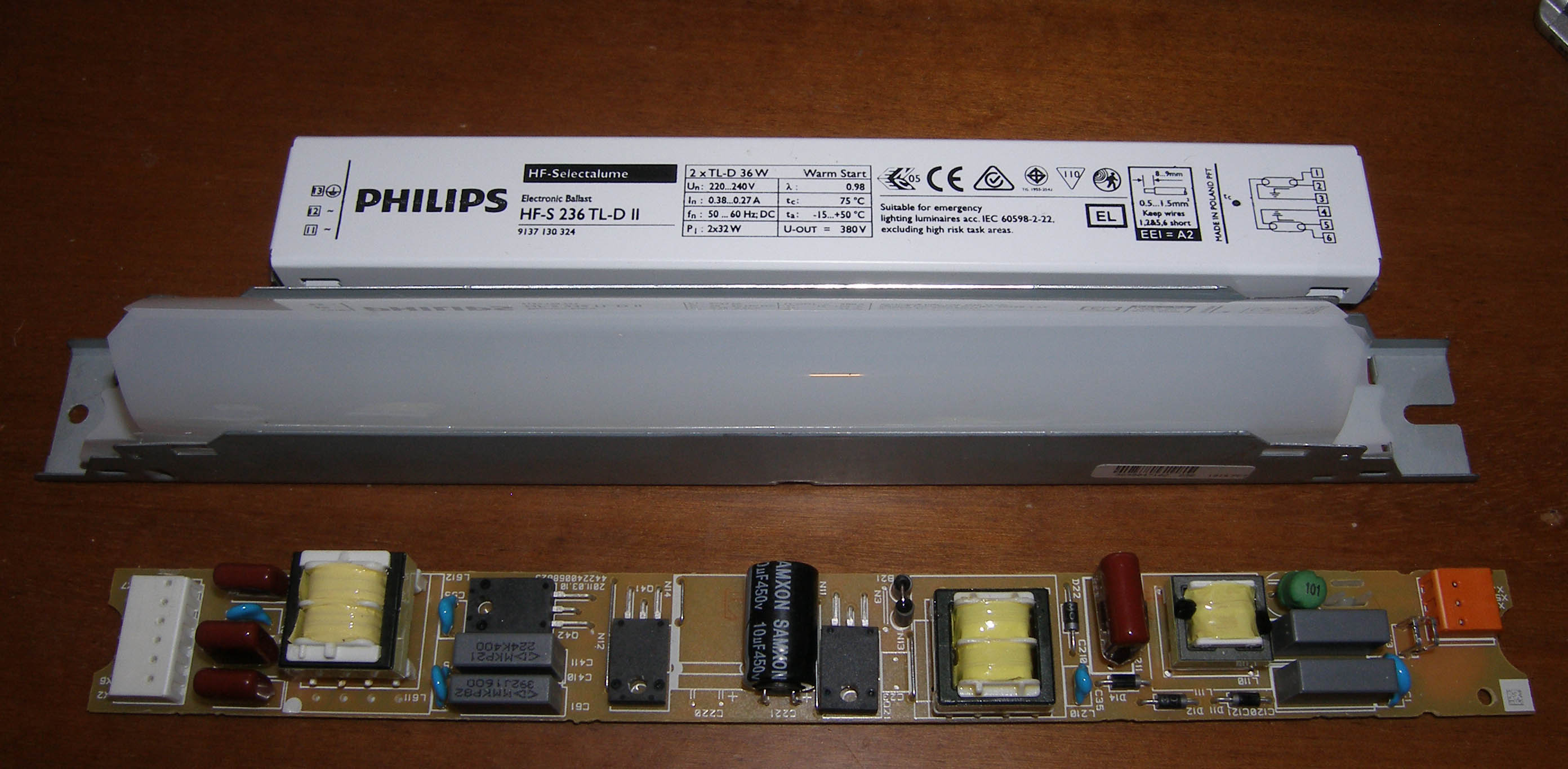 китайские поделки, я думаю, многи видели а вот фото ЭПРА Philips HF-S 236 TL-D II вскрываем вид сверху снизу сбоку для сравнения китайские ЭПРА: я думаю все вполне очевидно ;-) чем еще интересны данные ЭПРА ? основное и принципиальное отличие это ГОРЯЧИЙ запуск это означает что в начале на лампу подается ток, разогревающий нити накала и уже потом высокое напряжение для работы. это существенно продляет срок службы часто включаемых/выключаемых ламп. -------------------- Живы будем - Не помрем !