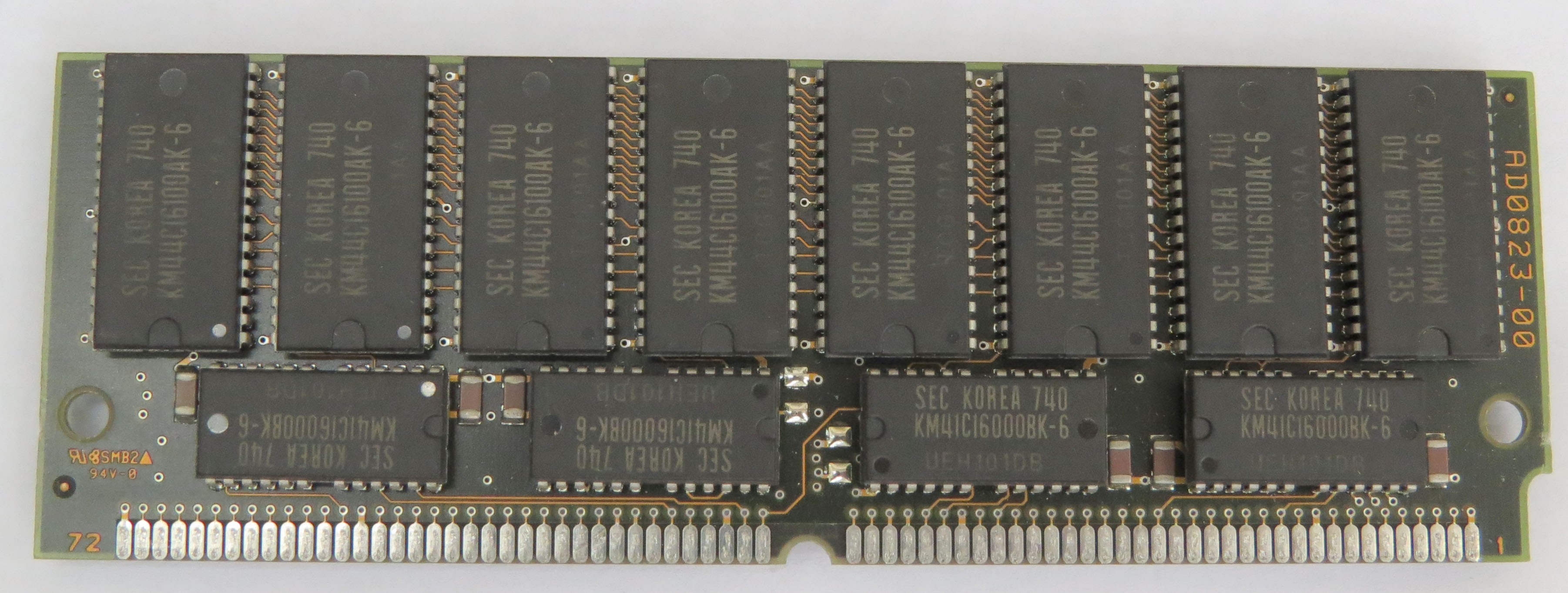 подходит любая память SIMM72 FPM объемом от 32х до 128МБ устанавливается парами тк шина данных 64бита Штатно установлено две планки по 32МБ DEC 5421277 memory 8mx36 70ns for Alpha station 400 В запасах было найдена пара вот таких 128МБ первый IBM 128MB 60ns 4k Refresh 5V (32Mx36) OPT: 94G6682 FRU: 76H4896 второй SEC KMM53632000AK-6U (по сути это одно и тоже, первый просто промаркирован IBM-ом) прекрасно подошли! -------------------- Живы будем - Не помрем !