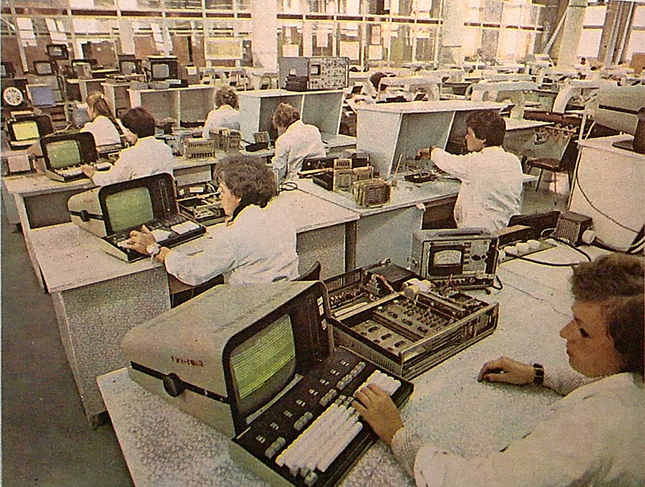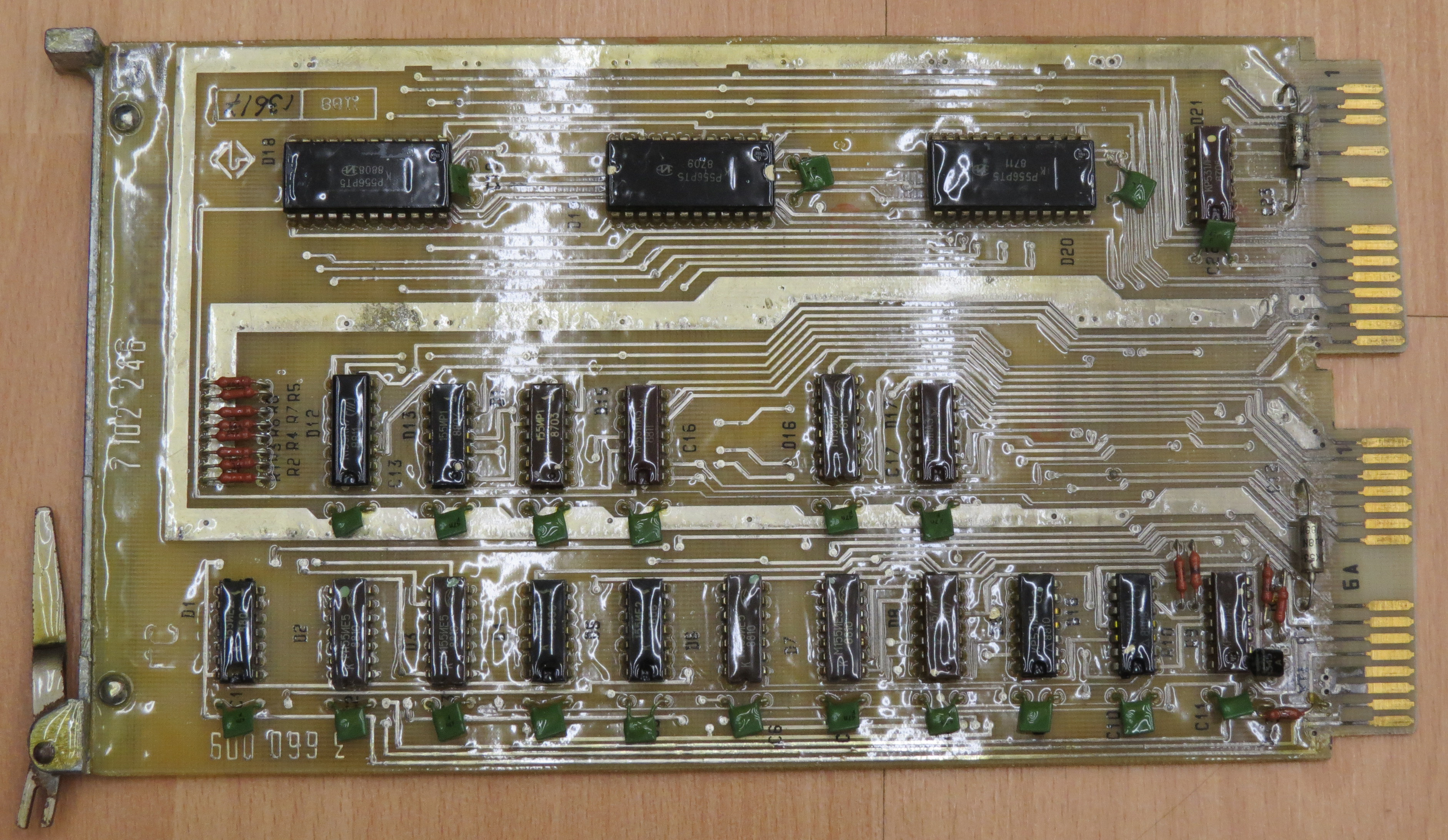 данный терминал датируется 1982годом и имеет ряд конструктивных особенностей Начнем с плат ГС тут явно бросается в глаза особенность - знакогенератор на РТ4 (!) ЗУ две платы ИВВ две платы ПЗУ МПУ -------------------- Живы будем - Не помрем !