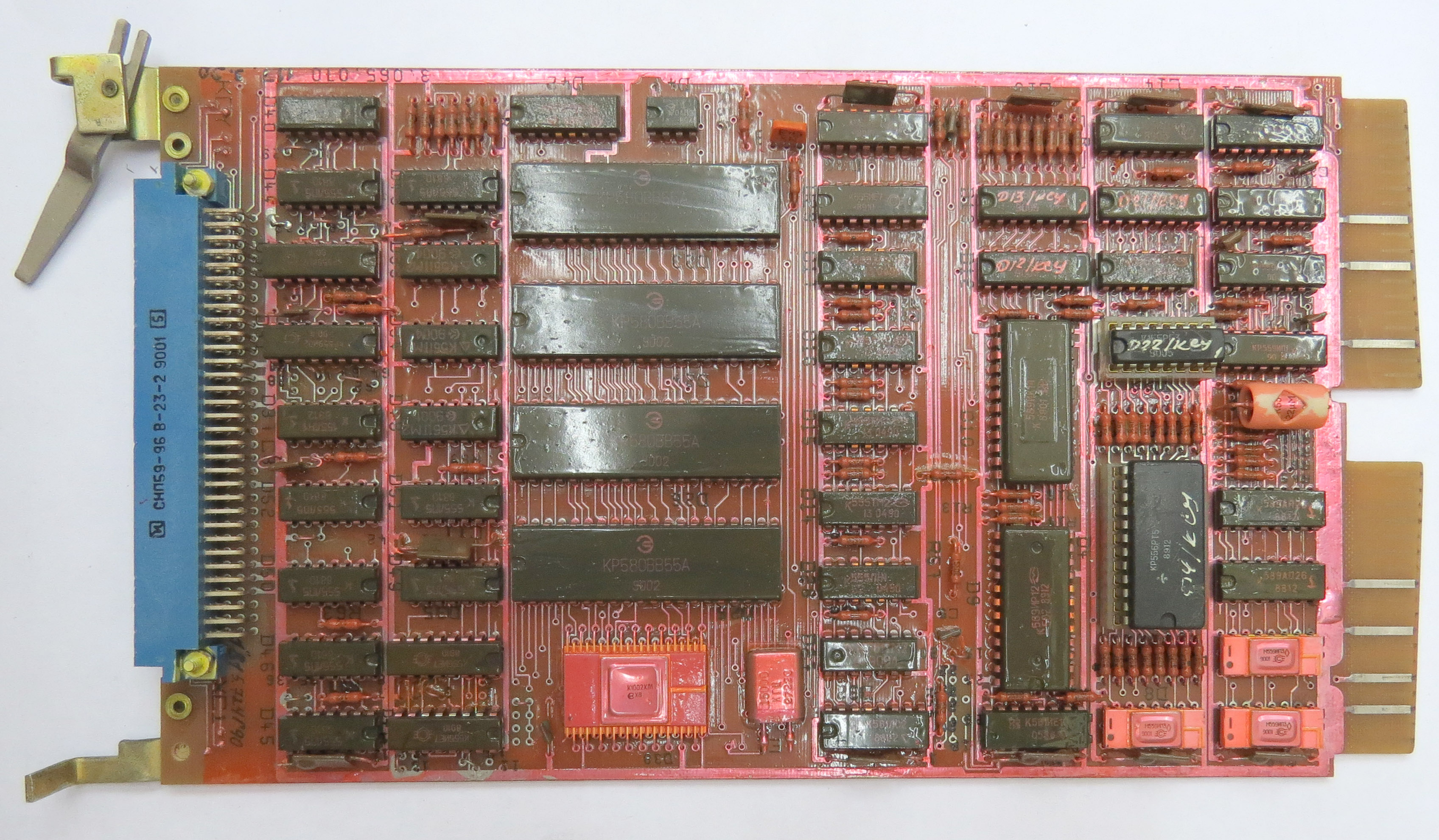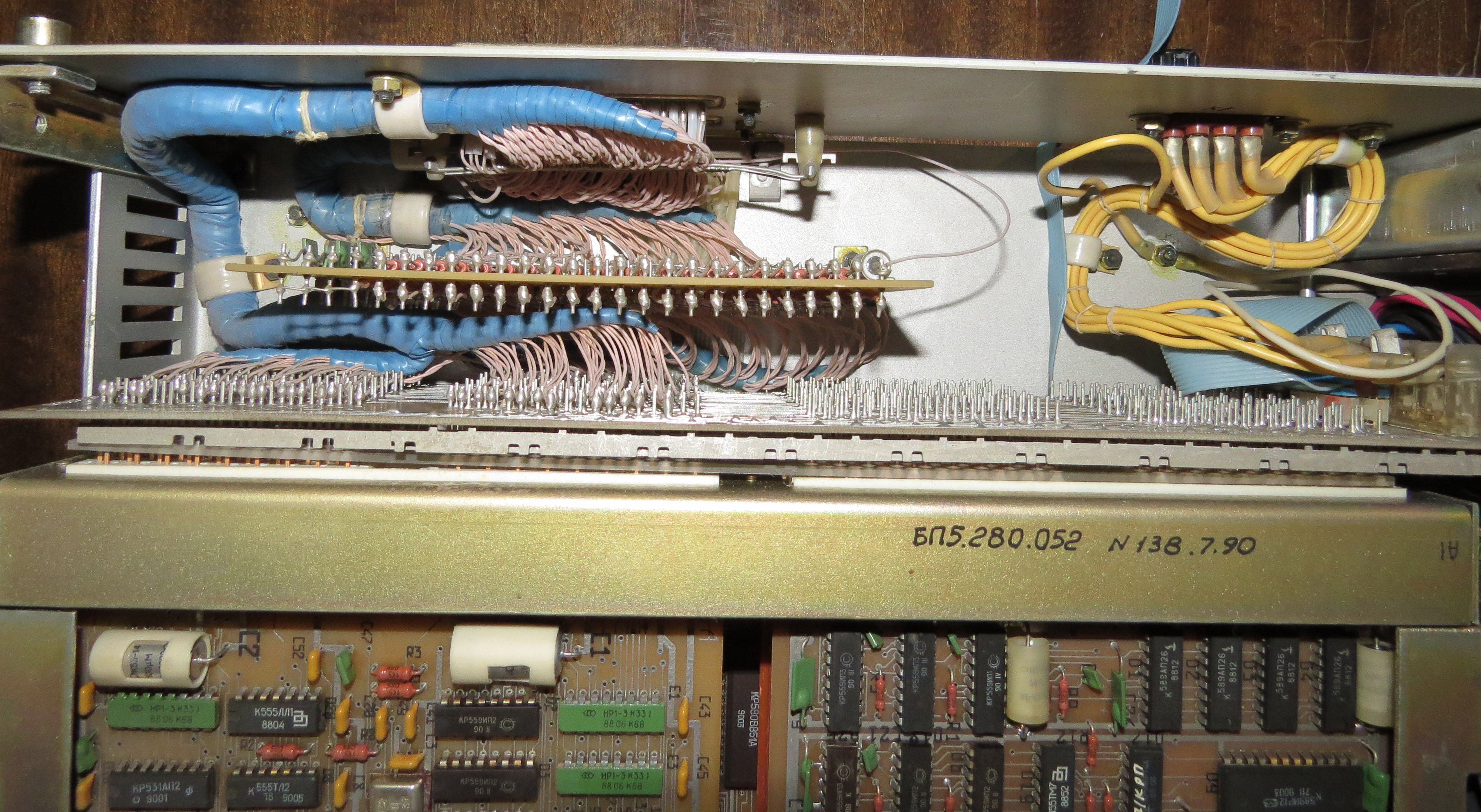 ПИ КОП - "Канал Общего Пользования", он же IEEE-488. И12 - плата на два ком-порта от машинки Электроника-60-1 что сразу бросается в глаза - она 4х слойная! Рядом плата электронного диска на РУ5 Контроллер дисководов - МХ Дисководы (зачем нам шлейфы есть есть МГТФ ? и это кстати 90й год) -------------------- Живы будем - Не помрем !