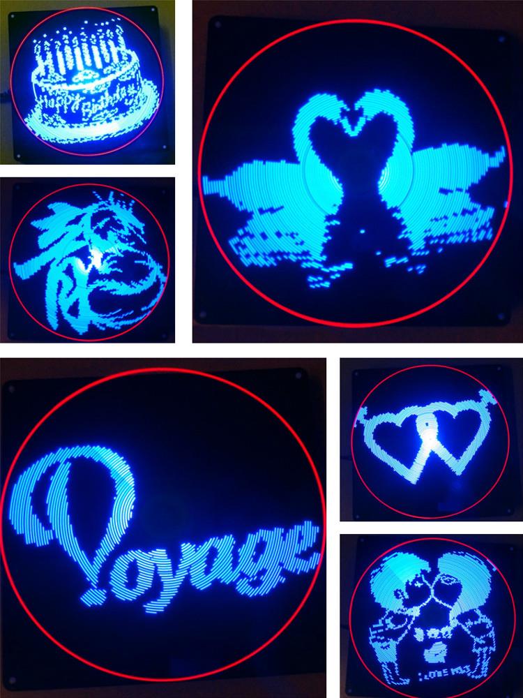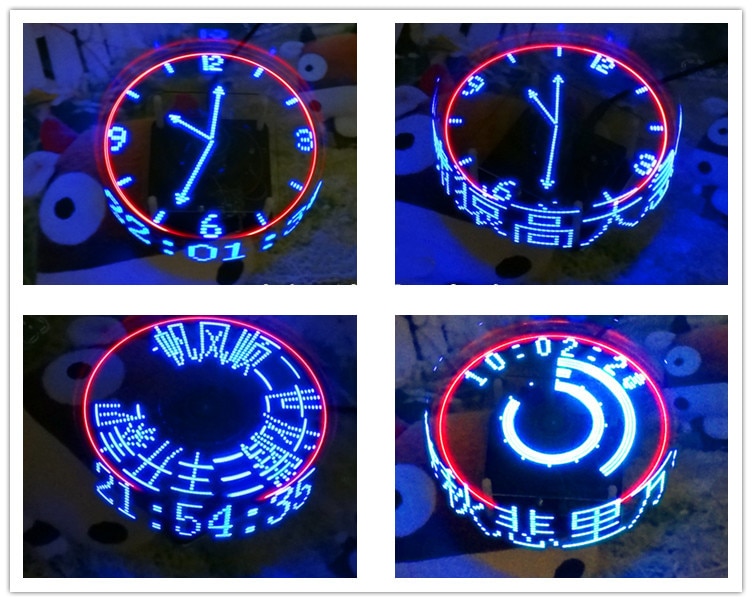 DIY Rotating LED Kit POV Soldering Training Kit Upgraded Version ![]() ![]() ![]() ![]() ![]() ![]() ![]() ![]() ![]() Кто-то собрал ![]() от себя добавлю 1. светодиод другого цвета в комплект не входит - надо найти самому 2. пайку светодиодов лучше делать под микроскопом (типа МБС-9 МБС-10 итд). без микроскопа будет тяжеловато. 3. окончательная балансировка делается припоем 4. если часы не запустились и бегают полосы - проверьте полярность фотодиода на вращающемся модуле и светодиода на стационарном. полосы это признак отсутствия синхронизации. Архив софта от китайцев, переработанный, с полностью переведенными на английский именами файлов и директорий. собрано из разных источников в один.