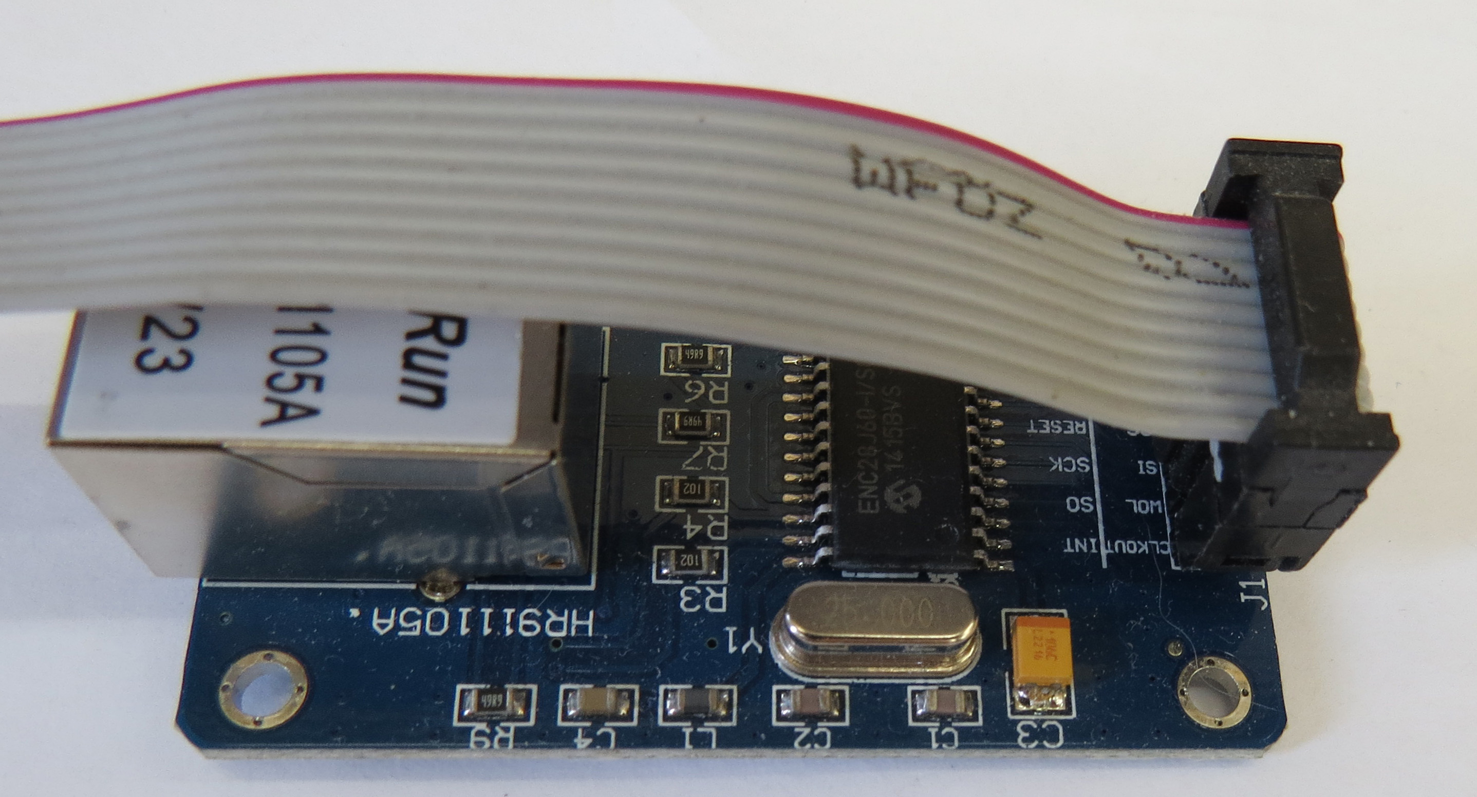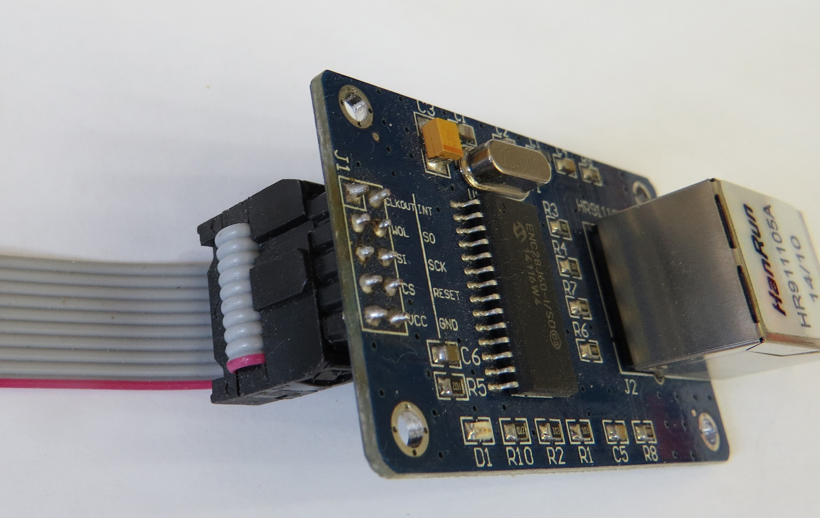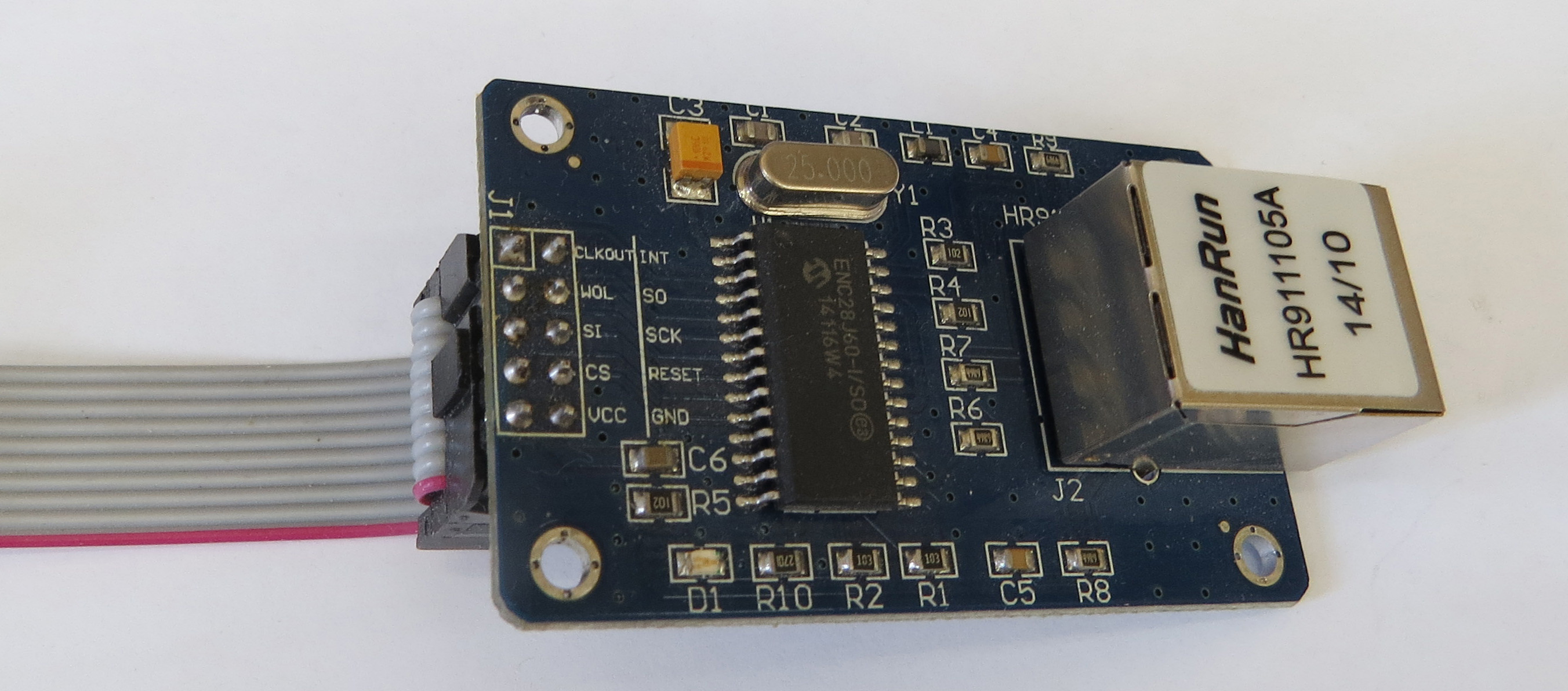 Общая концепция Контроллеры серии AZ для ДВК УКНЦ итд имеют возможность подключения внешнего сетевого адаптера по SPI интерфейсу на базе ENC28J60 Данный сетевой адаптер Ethernet позволяет реализовать подключение контроллера к сети со скоростью до 10Mbit. Для подключения необходимо: - соединительный кабель 10pin c разъемами IDC длиной не более 20см. - сетевой адаптер Etherent на базе ENC28J60 - сетевой Ethernet кабель - роутер или иное устройство/сервис раздающее адрес по DHCP Желательно - наличие в сети сервера NTP В качестве сетевой карты используется готовый 10pin модуль на базе ENC28J60 подключается шлейфом 10 жил с разъемами IDC 2x5 Разводка контроллера v1.00 для ДВК предполагала запайку сетевой карты прямо на плату, но в дальнейшем это было изменено и было установлено гнездо IDC 2x5 Соответственно для подключения сетевого модуля необходимо перепаять разъем на модуле - см фото В новой версии v1.01 разводка была изменена и теперь все подключается без перепайки.Это также касается всех остальных контроллеров - для УКНЦ PDP-11 QBUS и БК Быстрые ссылки: Приобрести контроллер для ДВК можно тут Приобрести контроллер для УКНЦ можно тут Процедура обновления firmware (прошивки) контроллера сборка и наладка конструктора контроллера для ДВК печатная плата версии v1.01 Контроллер псевдодиска на MicroSD для УКНЦ: сборка и наладка конструктора контроллера Контроллер псевдодиска на MicroSD на шину МПИ: особенности версии для УКНЦ Страницы разработки на ZX-PK УКНЦ + AZ - вариант контроллера псевдодисков на микро-SD для УКНЦ. Контроллер псевдодиска на SD-карте для ДВК -------------------- Живы будем - Не помрем !