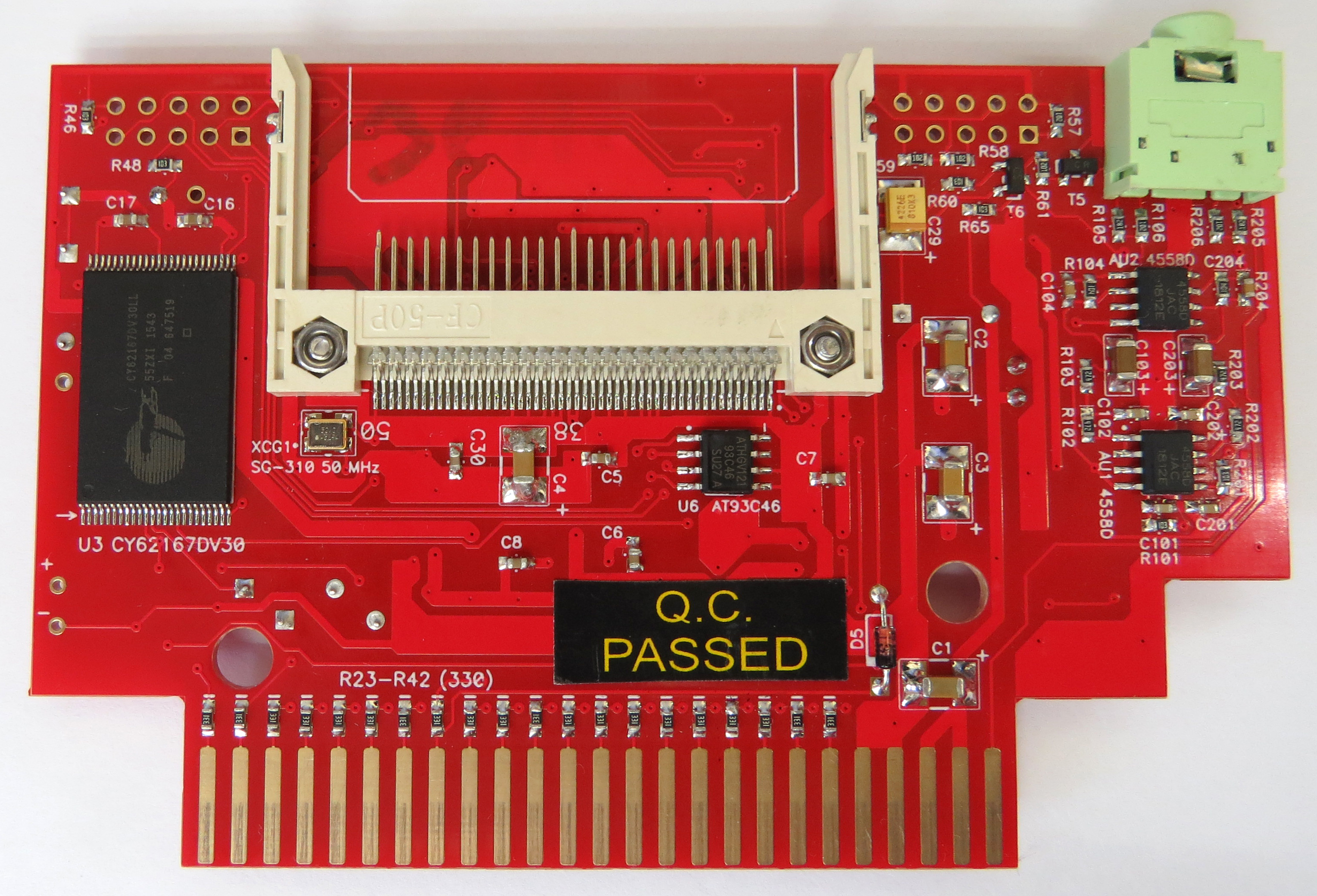 i think it would be correct to make some clarifications 1.As you can see, the audio connector has been moved to the other side of the PCB to reduce the complexity of milling the cartridge case. 2. I'm sure you will notice that almost all tantalum capacitors have been replaced with ceramic capacitors. reasons for replacing two - in the sound circuit, correctly place non-polar capacitors . 4 pieces of tantalum 4.7μF 25V are replaced with ceramic non-polar SAMSUNG 4μF 50V. - in power circuits, ceramic capacitors are preferable, since they have a lower internal resistance. in fact, in ordinary life, tantalum capacitors or other oxide capacitors are blocked by ceramic to reduce resistance at high frequency. I have the opportunity to supply ceramic capacitors right away - I develop other boards and order ceramic capacitors in bulk and such a replacement is not expensive. All these replacements are made with only one goal - to achieve maximum product quality! -------------------- Живы будем - Не помрем !