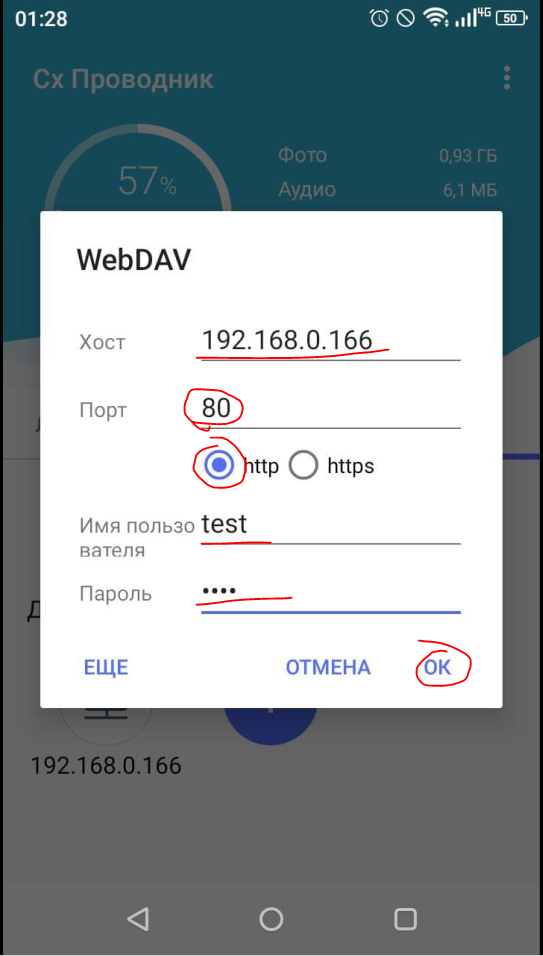 ставим CX-проводник создаем новое подключение выбираем webdav имя-пароль любые готово: -------------------- Живы будем - Не помрем !