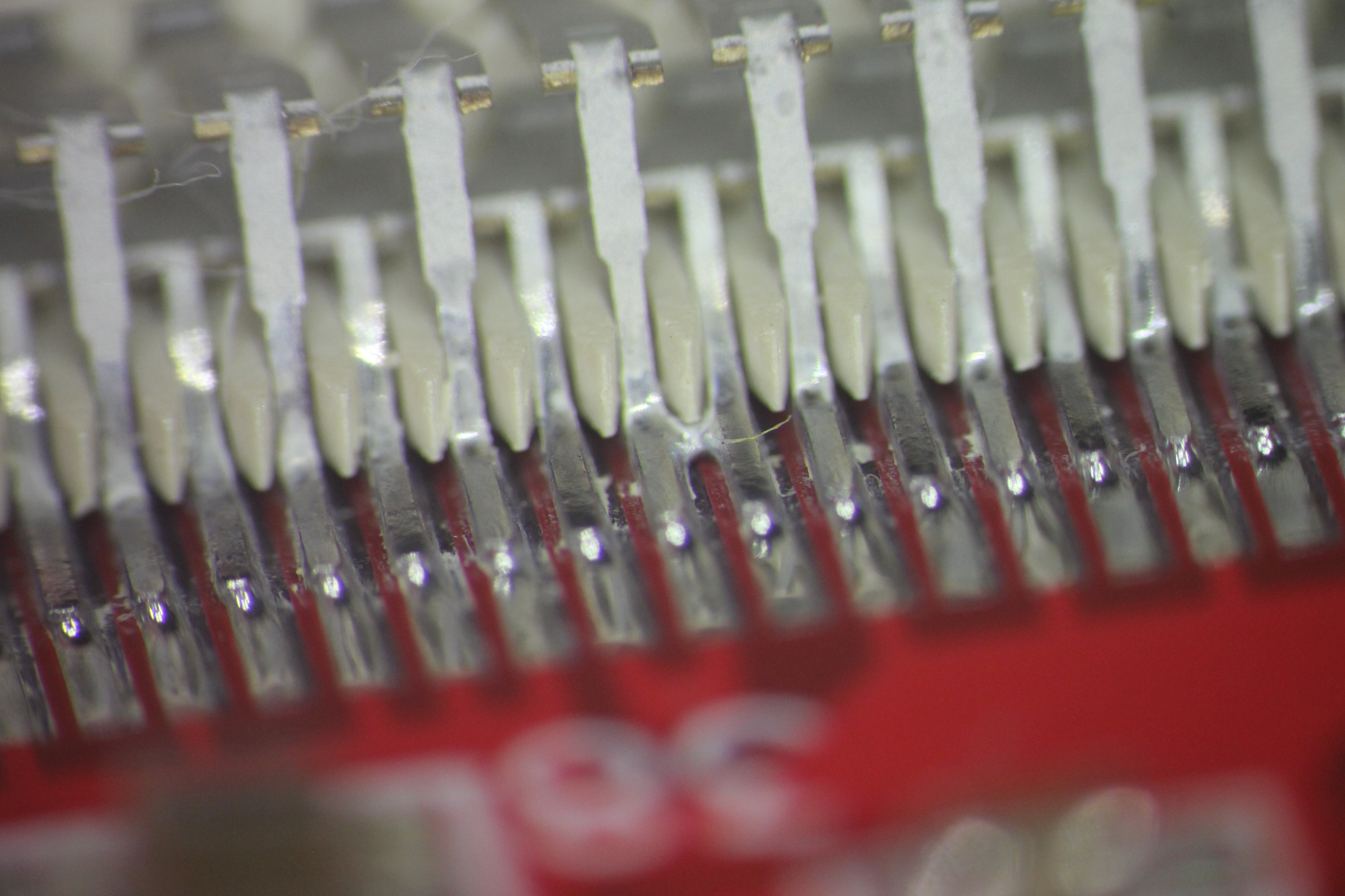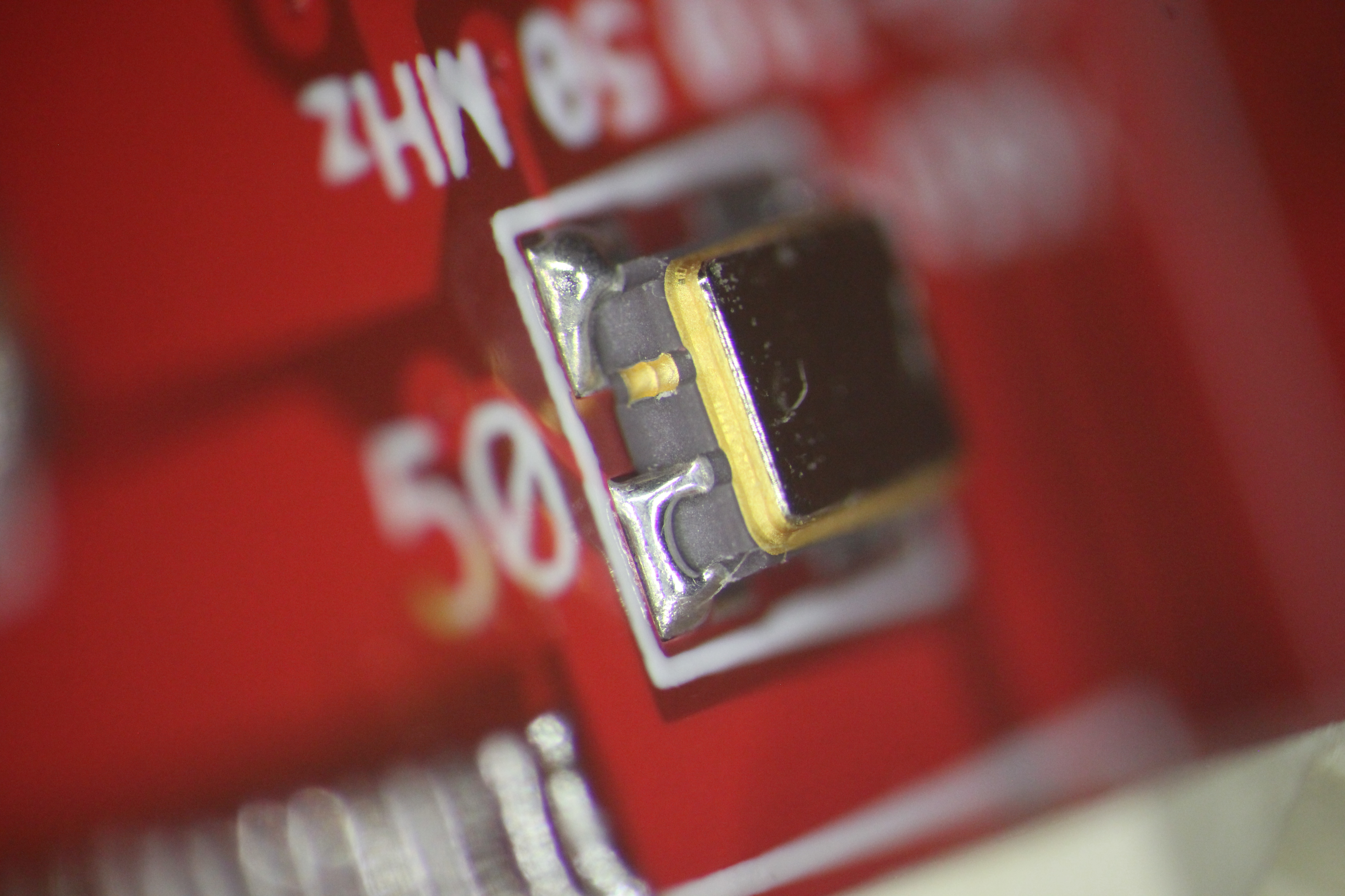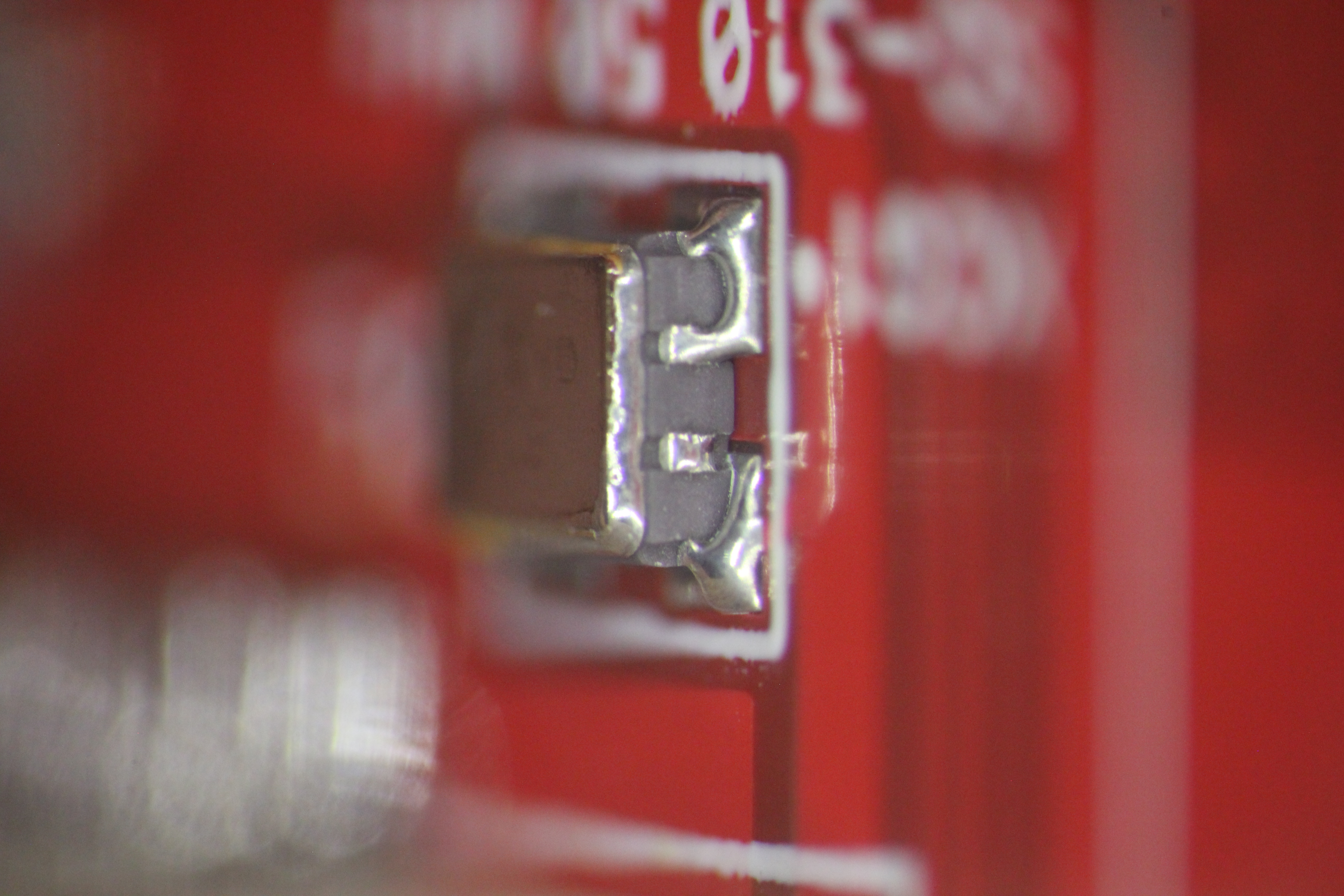 видна микротрещина пайки конденсатора 5ая нога слева в воздухе нога в центре вообще не пропаяна 4,7,8 ноги в воздухе хорошо виден зазор 5ая нога слева в воздухе 1,5,7 нога слева в воздухе хорошо виден зазор есть припой, есть остатки флюса но контакта нет нога в центре в воздухе пятно контакта меньше 0,2кв мм ! ноги в воздухе эти дефекты хорошо показывают жесткую необходимость работать с микроскопом ибо автор этих дефектов паял с такой наглазной лупой и в принципе не удивительно - она всего 2.5x -------------------- Живы будем - Не помрем !