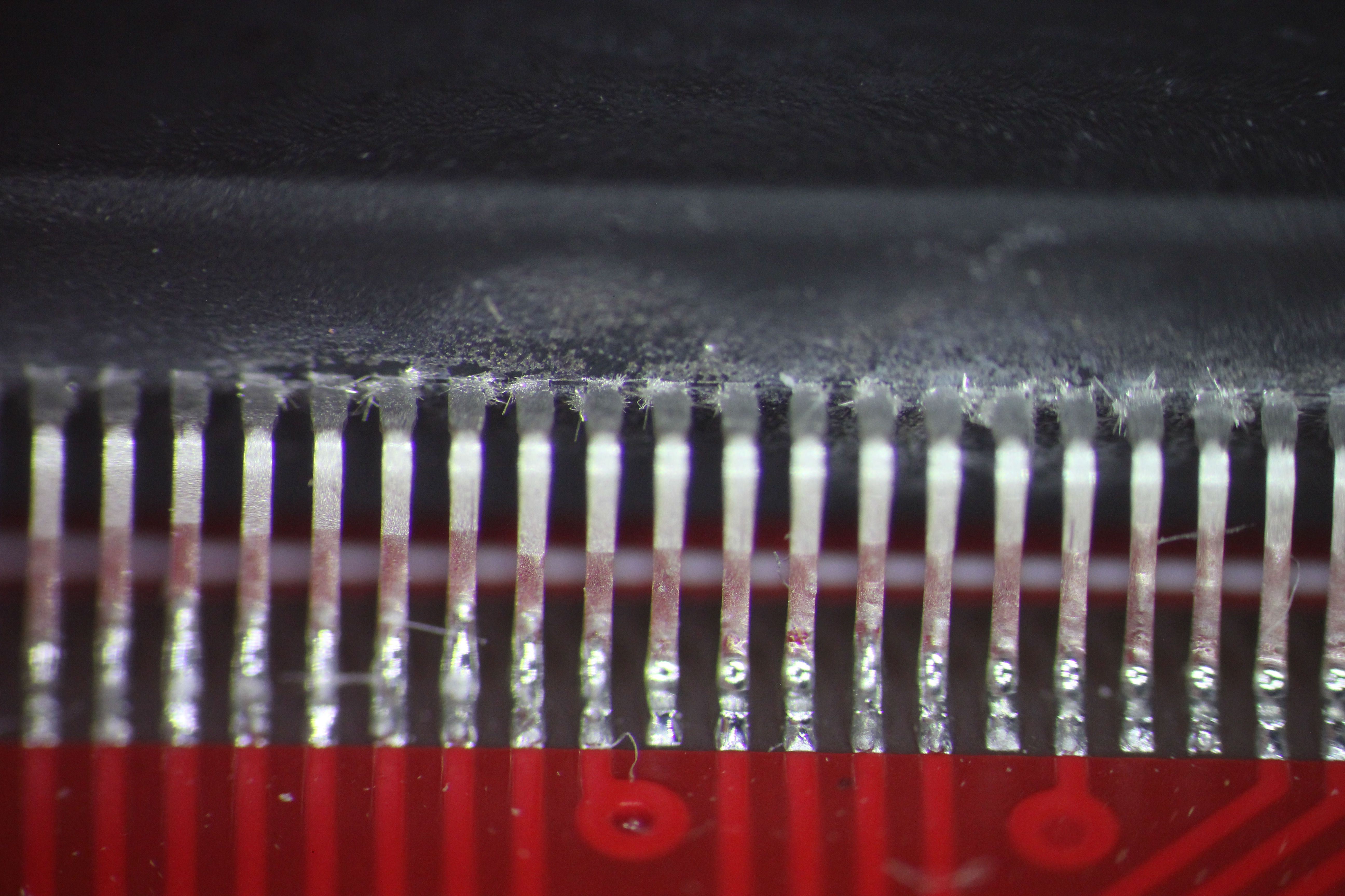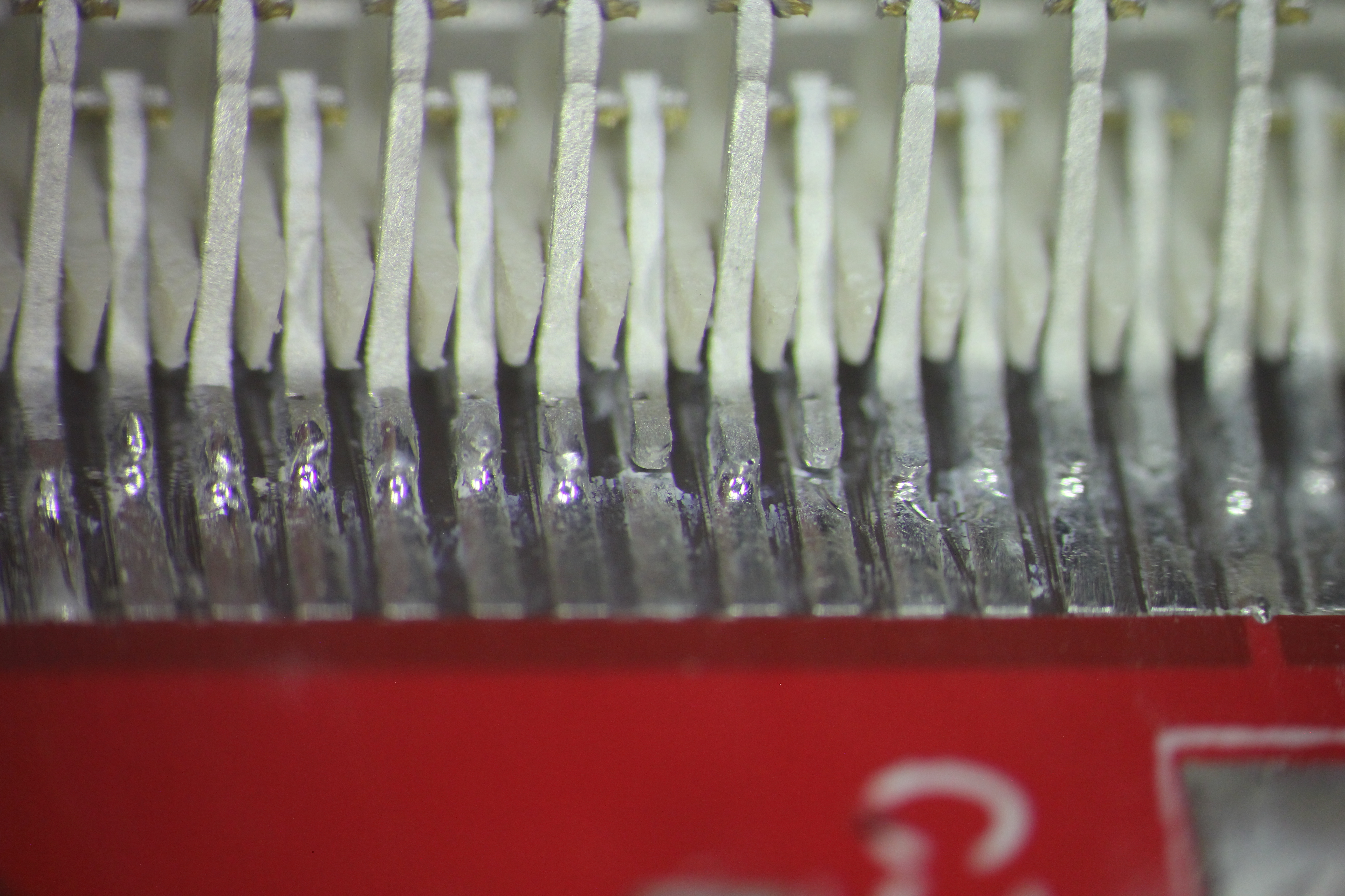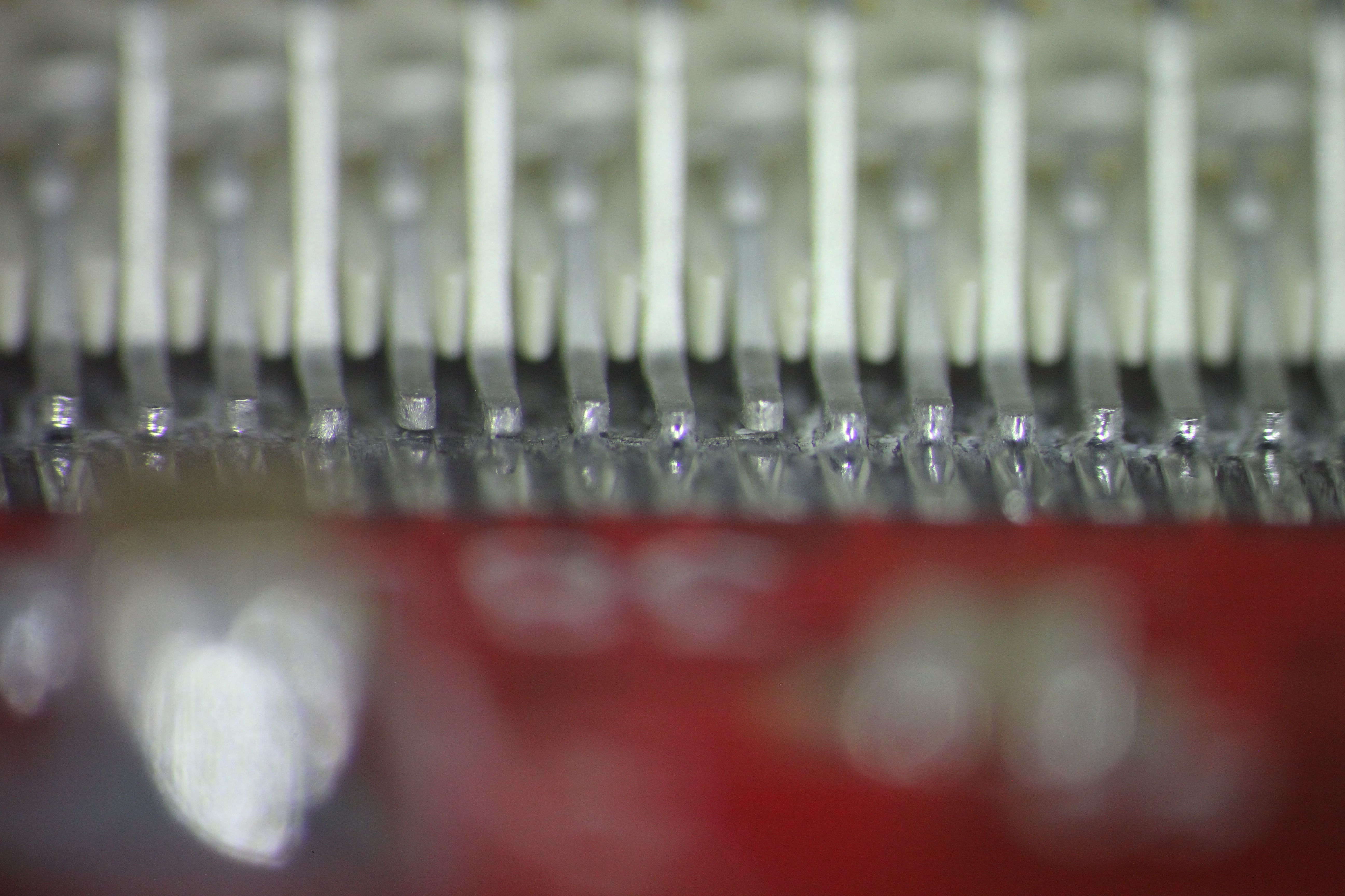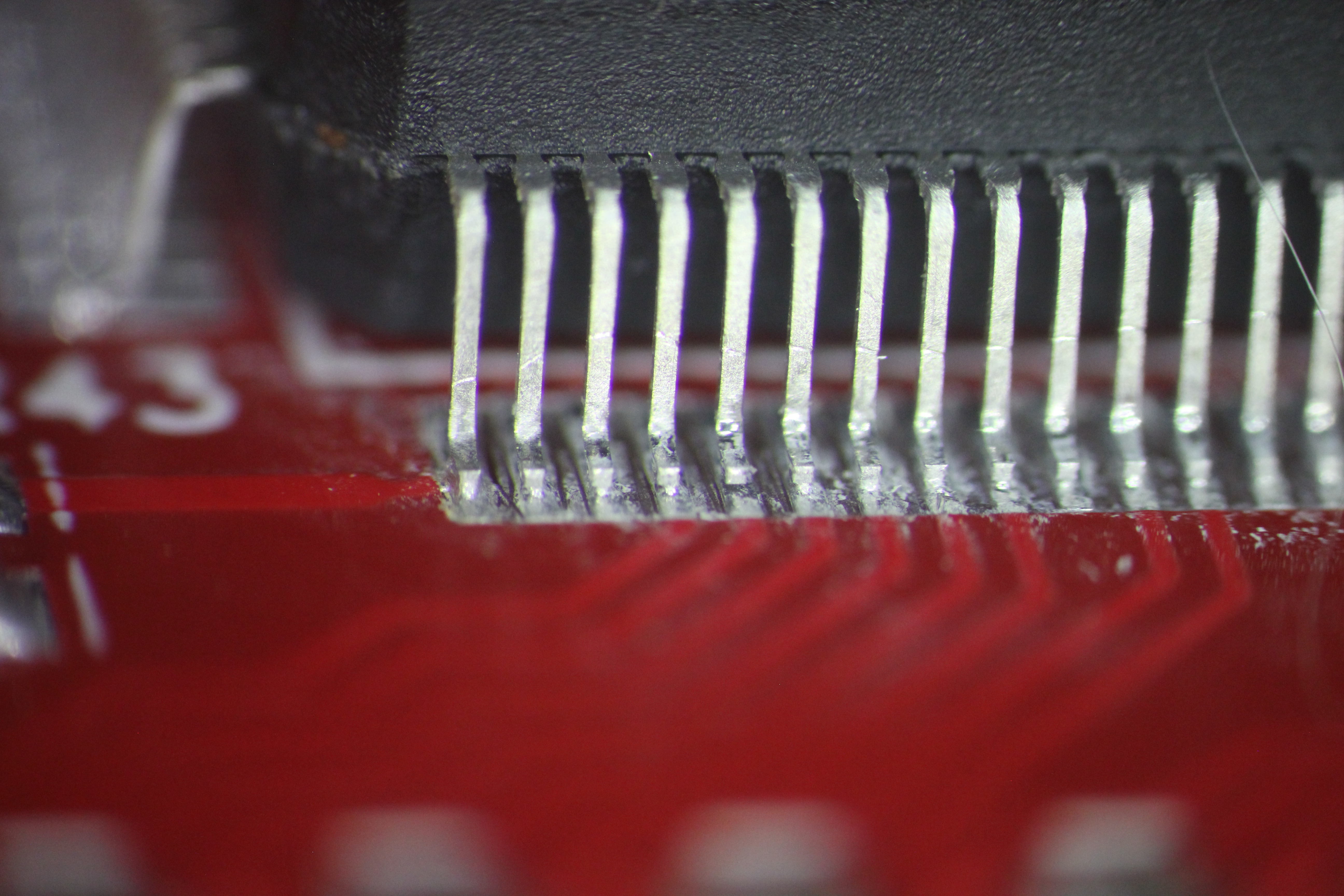видна микротрещина пайки конденсатора 5ая нога слева в воздухе нога в центре вообще не пропаяна 4,7,8 ноги в воздухе хорошо виден зазор 5ая нога слева в воздухе 1,5,7 нога слева в воздухе хорошо виден зазор есть припой, есть остатки флюса но контакта нет нога в центре в воздухе пятно контакта меньше 0,2кв мм ! ноги в воздухе эти дефекты хорошо показывают жесткую необходимость работать с микроскопом ибо автор этих дефектов паял с такой наглазной лупой и в принципе не удивительно - она всего 2.5x -------------------- Живы будем - Не помрем !