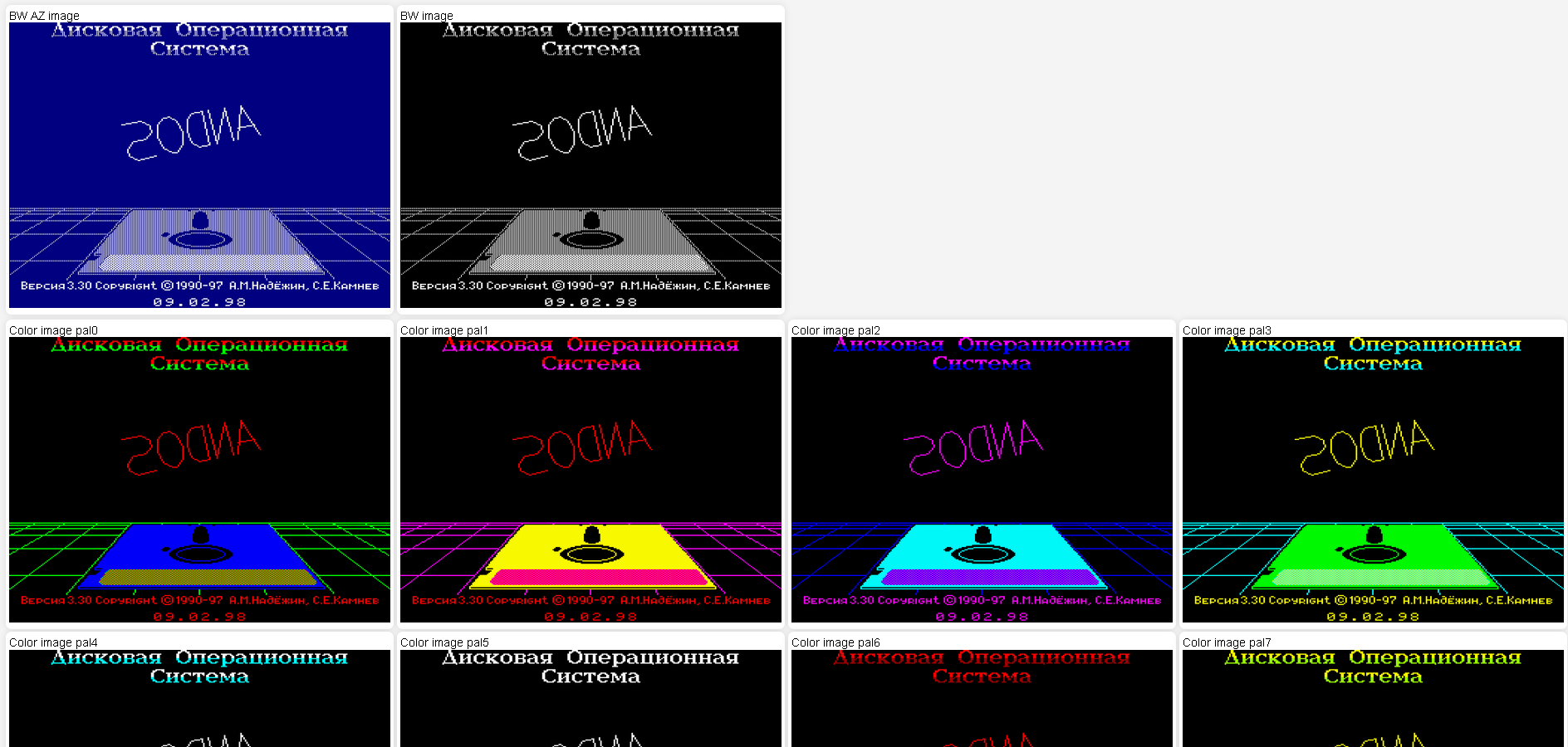 Кол-во скачиваний: 11871на БК10 с 3MHz запускать start2.exe (тк у БК не хватает быстродействия отобразить заставку пришлось внести коррективы) Про доработку БК-0010(01) читать тут -------------------- Живы будем - Не помрем !