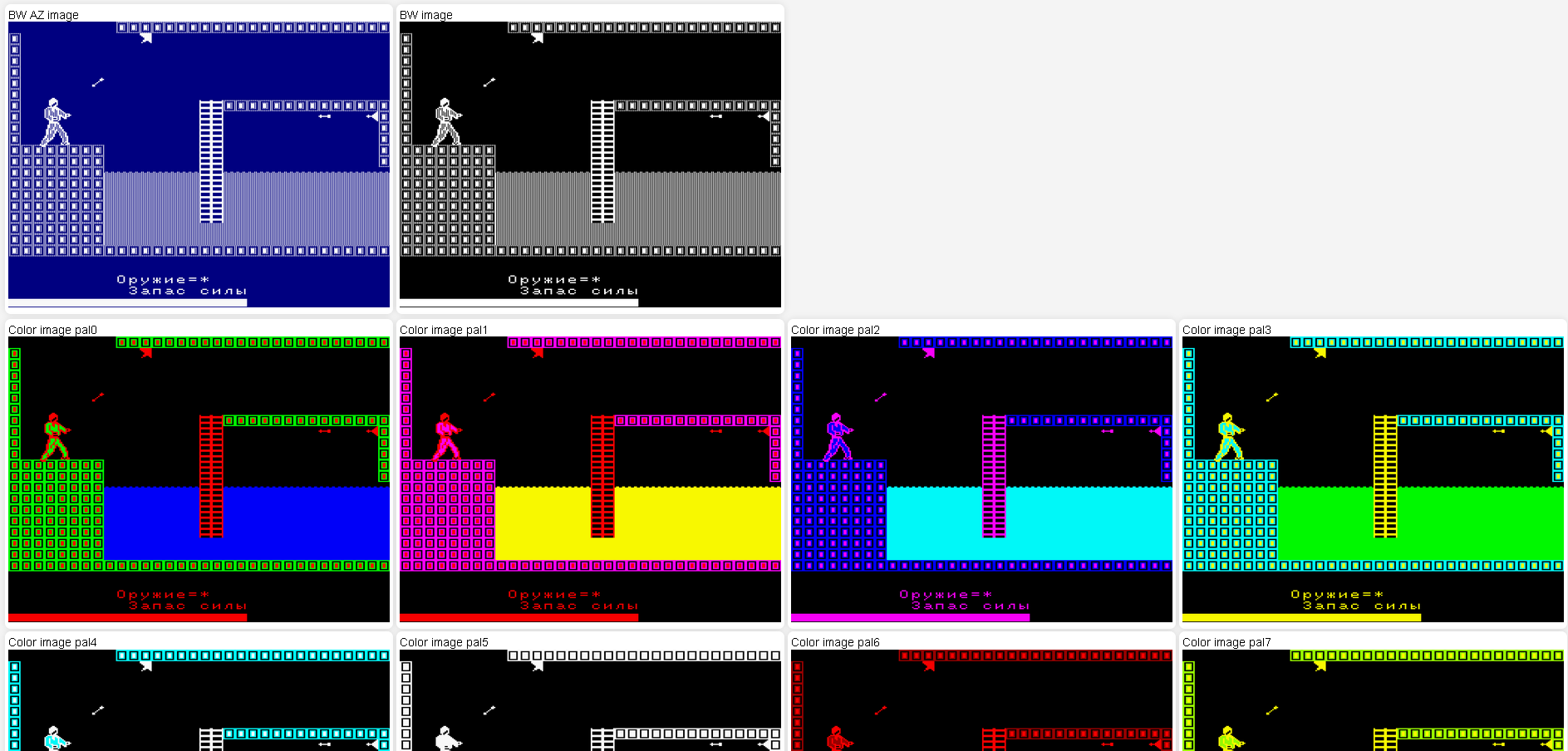 в прошивке переработано A. блиттер: добавлена команда 51 предназначена для заливки константой по контуру спрайта, данный способ отметить пересечение или попадание было характерным для игр 80х годов к примеру тут https://www.youtube.com/watch?v=LtetK6-x6bs&t=146s герой засвечивается белым во время столкновения с шерифом 51 наложение SRC на DST =>DST (при SRC!=прозрачный цвет SRC) тут аналогично - нужен только SRC для проверки условия важно - константа заполнения в младшем байте, а константа прозрачного цвета SRC в старшем (не как в 21й команде где константа прозрачного цвета SRC в младшем байте) Прошивка