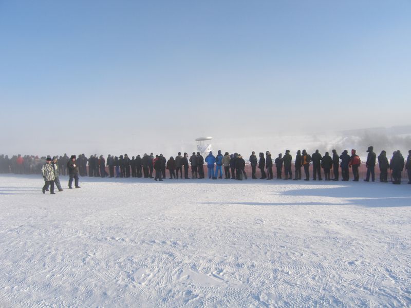 И мы тоже скатались посмотреть. Сам Чусовой поразил густым туманом в котором видимость около 30-40м . Посмотрели на соревнования, пофотографировали, окончательно промерзли, залезли в теплую машину и уехали домой