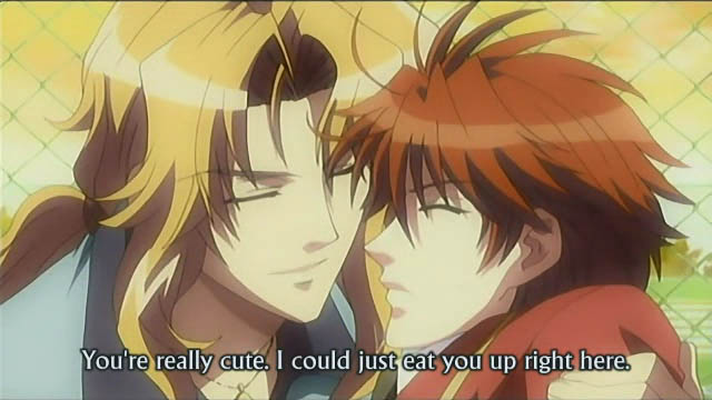 А я что-то не помню, чтоб у них губы блестели, надо пересмотреть=))) Эх, кидану и я картинки из Gakuen Heaven)) Так и не дождалась там поцелуя((( Эскизы прикрепленных изображений -------------------- ![]() Огненная душа... |