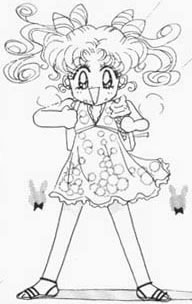 А какого цвета у Коусаги волосы показано? Нашла совсем маленькие картинки с ней, на них волосы такого интересного цвета, интенсивнее, чем у Малышки. И чуть-чуть информации о ней: Цукино Коусаги – второй ребёнок Банни и Мамору. Она учится в 3 классе. У неё причёска с четырьмя хвостиками, она ещё более наивна, чем её мать, не любит кошек, дети других воинов её не любят. Её имя означает вторая Банни, но взрослые зовут её просто Чиби. Её символ- кролик. ![]() |