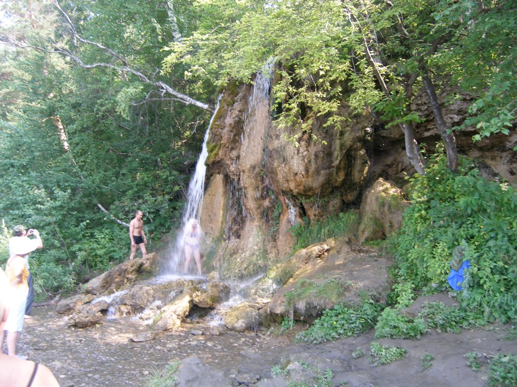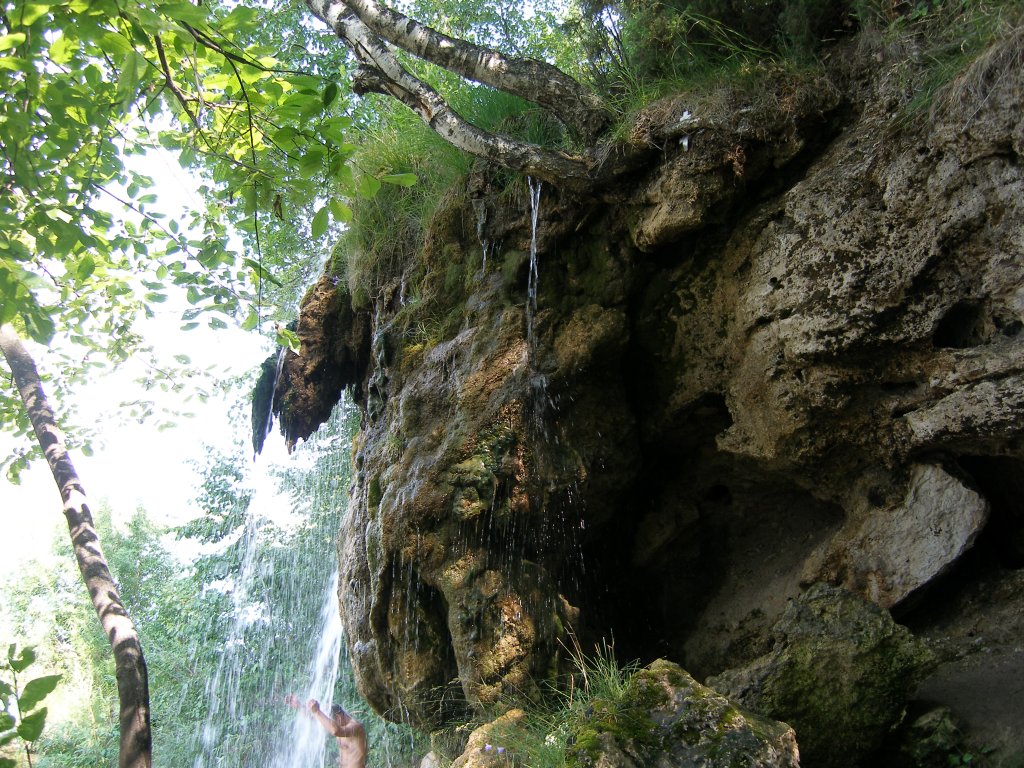 Родники водопада - сверху сосны сниду вода