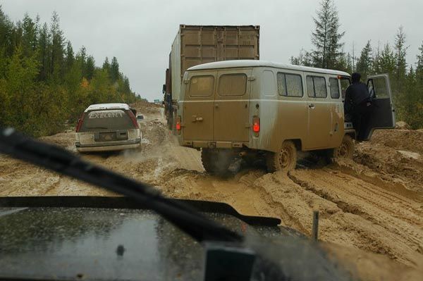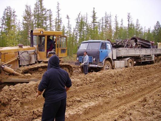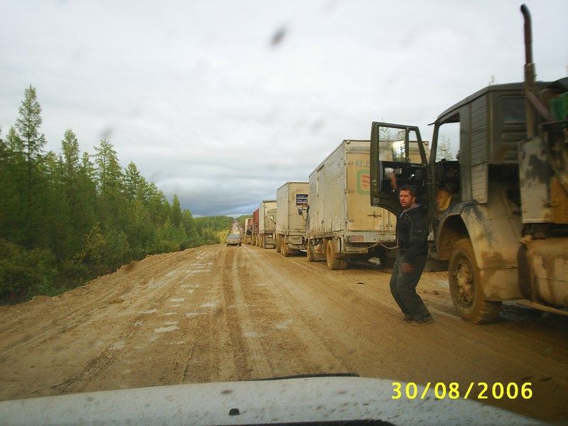 Ребята, мне многих из Вас искренне жаль Насчет стрельбы: стрельба была, но слава Богу, только в воздух. Дальнобойщики - народ самоорганизующийся, так что дебоширов быстро утихомирили. Пытались даже организовать проезд своими силами: типа "10 машин с этой стороны, 10 с той" - но постепенно такие вот идиоты и нахалы, которым надо "скоро", развалили и этот мало-мальский порядок... Драки, избиения и пр. конфликты происходили как раз между дальнобойщиками и водителями легковых машин (перегонщиками, таксистами и пр.) - легковушки застревали на трассе и мешали остальным, усугубляя и без того незавидное положение. Пока трактор не вытащит машину такого горе-торопыги, все остальные вынуждены стоять. Из близлежащих (грубо говоря, т.к. это 300-400 км) населенных пунктов стали подтягивать грузовики и вахтовки с провизией. "Коммерсантов", которые пытались выручить по 180-200 рублей за кило окорочков, народ не понял, и "коммерсанты" с разбитыми лбами и лобовыми уехали восвояси. Без окорочков, естессно... МЧС-ники доехать к месту событий не могли Причины такой ситуации следующие (имхо, конечно): 1. Погодные условия. За август осадки составили 4 месячных нормы. За первые две недели сентября - ещё 2 месячные нормы. Даже недалеко от Якутска (37 км Покровского тракта) был настоящий оползень - с сопки сползла масса глинистой почвы вместе с деревьями, травой и тем же песчаником. Перекрыло трассу слоем грязи толщиной в метр-полтора и шириной 25-30 метров. К счастью, там много населенных пунктов, подогнали бульдозеры и тракторы, всё разгребли, но потом дежурили ещё два дня, т.к. оползень продолжался... 2. Нарушение технологии строительства трассы. Рядом проходит насыпь железной дороги - и с ней ничего подобного не происходит. Там всё по-честному: основание (тело насыпи), отсыпка разнофактурным щебнем, тепло-пароизоляция и т.д. А здесь - пардон, в глину камней насыпали, песочком "заровняли" - езди, народ! Ответственный за трассу - Росавтодор, подрядчики - местные, работники - гастарбайтеры (т.к. подрядчиков жаба душит платить своим же: в карман-то меньше упадёт, не дай бог на "крузер" третий не хватит - всё, нужда пришла!) Короче, всем, кому кажется, что эти фото - ерунда, что могучий Шойгу сотоварищи всё могут сделать - фтопку, господа. И дамы, простите за грубость, тоже... -------------------- Живы будем - Не помрем !