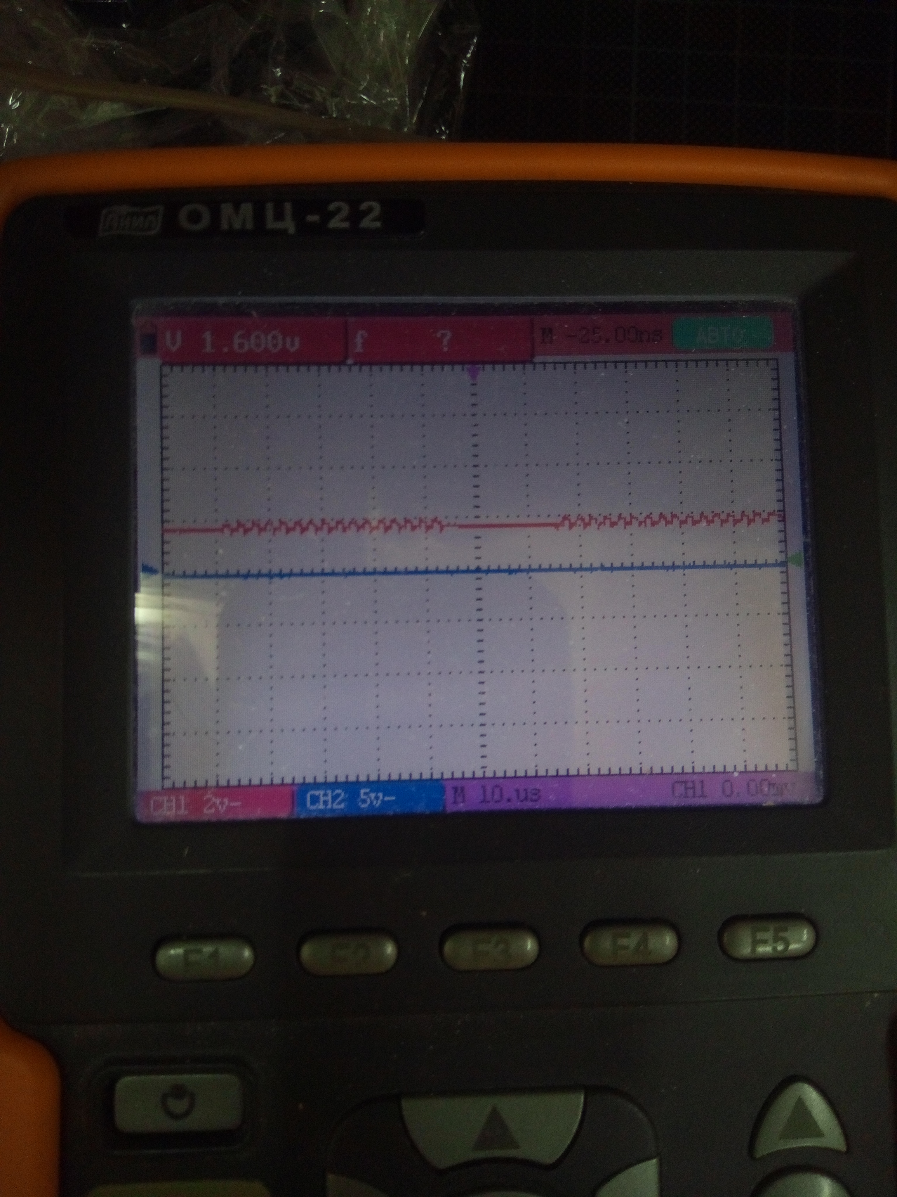 Видим, что картина на ножках процессора, хоть и не кардинальным образом, но изменилась (или мне просто хотелось верить, что процессор был заменен не зря, ибо я еще не совсем уверенно или, точнее сказать, совсем не уверенно расшифровывал картинки, которые рисовал осциллограф).
