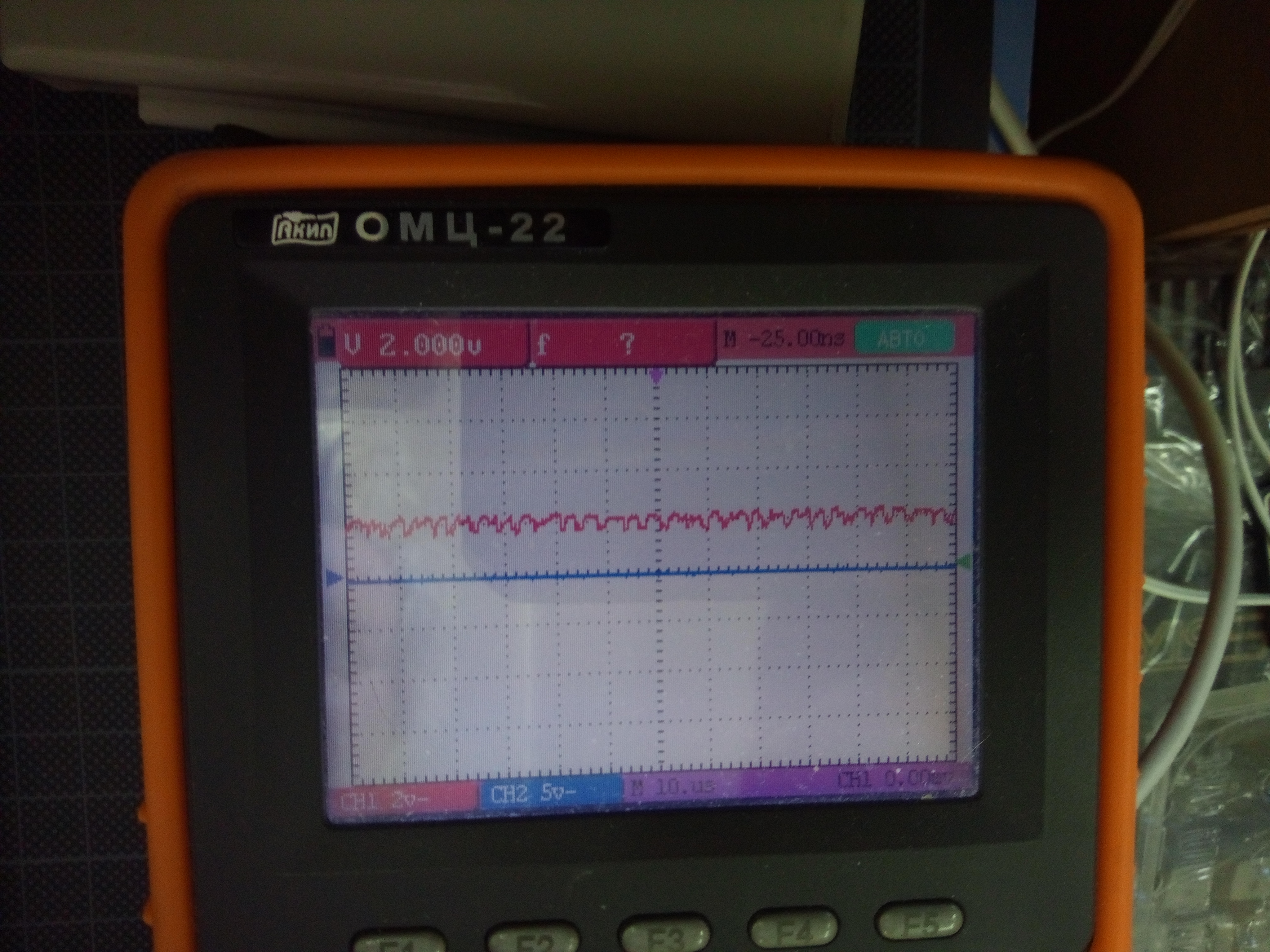 Переключаем осциллограф на ножки процессора 29 (DCLO) и 30 (ACLO), включаем режим и что мы видим?