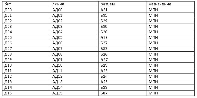 При записи числа "000001" в регистр 177670 линия внешней МПИ АДО устанавливается в 0в. состояние. а линии АД01 - АД15 в состояние +5в.