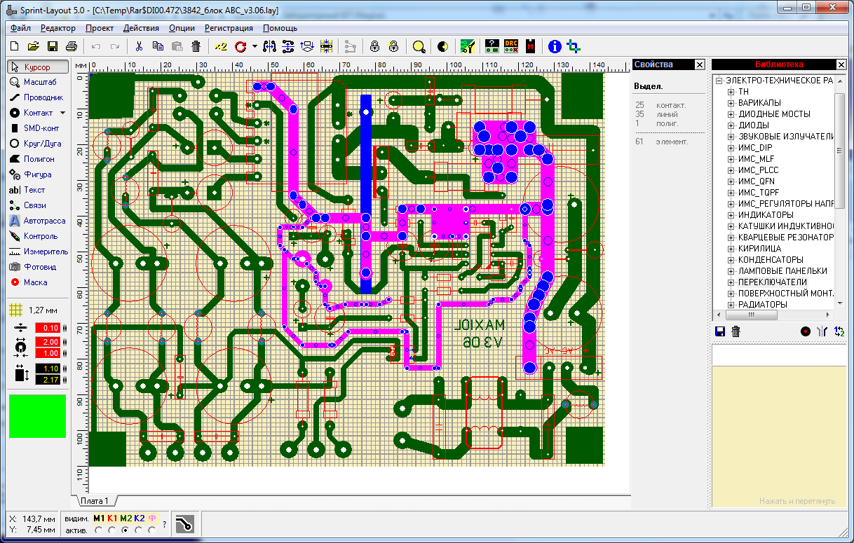 Для питания макета циклотрона (вид OTL) был разработан лабораторный 2х канальный стабилизированный регулируемый блок питания.