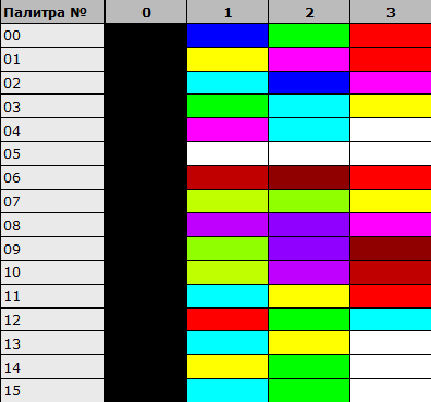 ** ТАБЛИЦА ПАЛИТР **