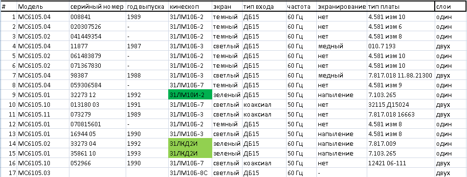 и очень редко зелеными трубками 31ЛМ10И-2 или 31ЛКД2И