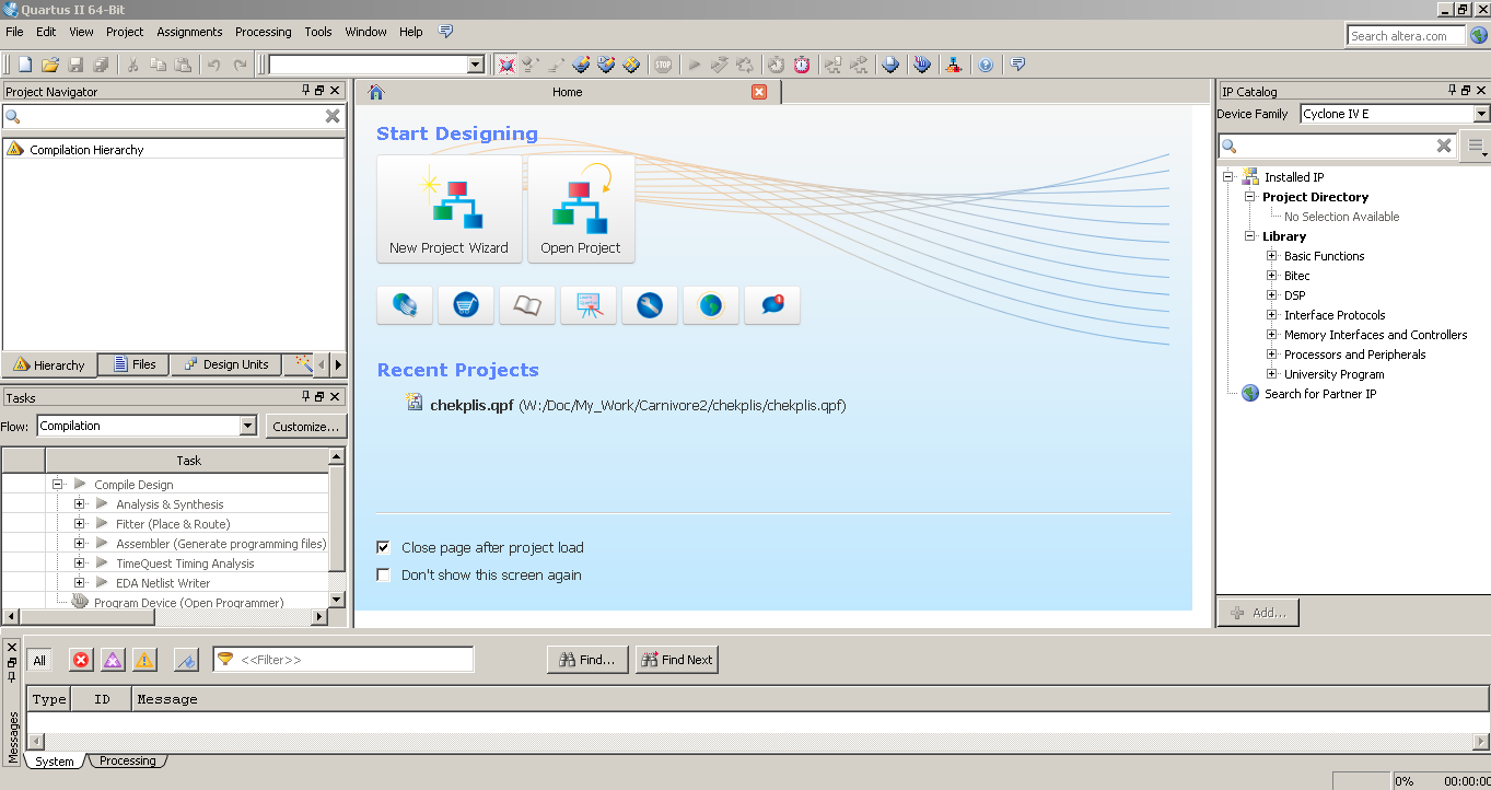 - Запуск:По умолчанию установка производится в папку ~/altera/15.0/quartus/bin/ поэтому строка запуска должна быть примерно такой: (~/altera/15.0/quartus/bin/quartus) &