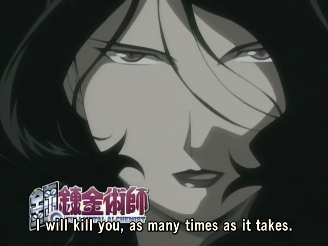 Ну, и конечно, меня поразил образ матери, как он подается в сериале: от идеала любящей все понимающей матери трансформация в безжалостного гомункула без души, полустертые человеческие воспоминания которого заставляют сражаться с сыном (?). Если Ложь человеческие воспоминания заставили помочь Эду и принять смерть, то Лень – желать убить своего создателя, сына женщины, чьи воспоминания всплывали в ее памяти. Конфликт образа матери и того, что получилось у братьев Элриков в результате попытки ее воскрешения, все это под чудесное исполнение детским хором (по-русски!) «Мама, милая мама», - душераздирающее впечатление. А Роза? Да, каждый раз она была лишь послушной игрушкой в чужих руках, ее использовали без малейшего возражения с ее стороны, но подобная безгласная жертвенность мне непонятна: как можно тупо стоять и смотреть, как твоего ребенка используют для алхимических преобразований, таскают, бросают? В общем, мамы в сериале – довольно таки одиозные фигуры, и учитель Изуми – тоже.
