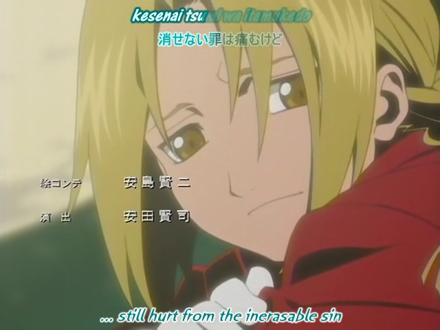 Спасибо, Нурико – с твоей подачи я села смотреть «Стального алхимика». Диск с 1 сезоном я получила еще полгода назад, но, посмотрев первую серию, отложила. Рисовка показалась несколько «детской», я подумала – вот, еще один «подростковый» сериал, добро побеждает зло, ect. После твоих похвал решила все-таки посмотреть – Нурико плохого не посоветует. И да, первое ощущение оказалось обманчивым. И вообще, на протяжении сериала обман первых впечатлений меня просто преследовал: все оказывалось не таким, каким казалось в начале. В злобных монстрах вдруг обнаруживались человеческие черты, добрые старушки оборачивались циничными и безжалостными стервами, любящий отец оказывался способным принести в жертву дочь ради лицензии алхимика, химеры становились друзьями, а холодный карьерист мог пожертвовать всем, чего так долго добивался, ради такой вещи как месть за смерть друга.